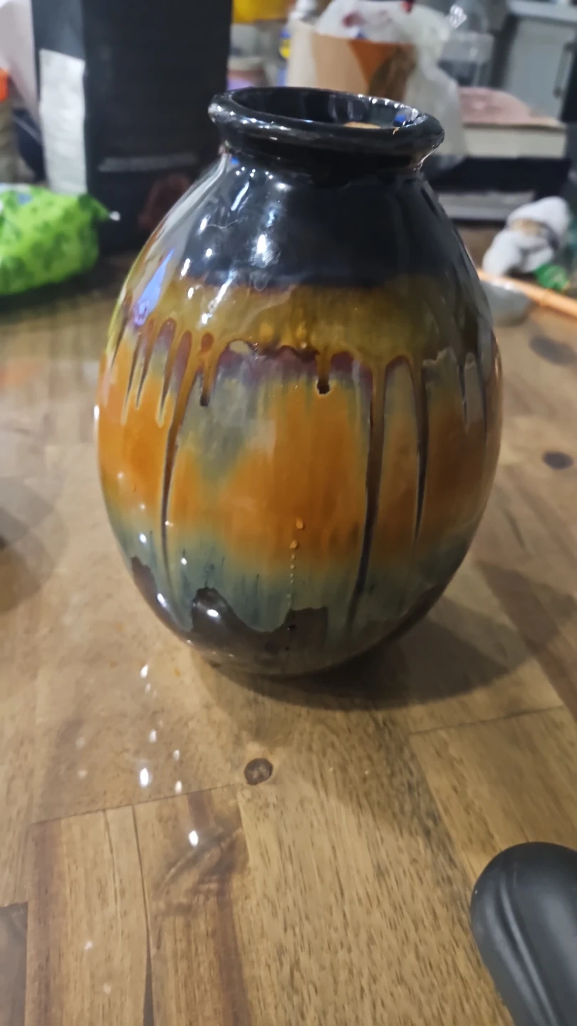 Selling a variety of home decor items. Includes a vase with a unique drip glaze, a decorative zebra head, a wooden bowl, and a colourful glass vase. All in good condition and ready to add some character to your space