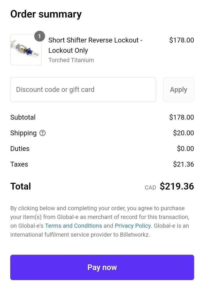 I have a Billetworkz Short Shifter Reverse Lockout for sale in Torched Titanium (rare color).