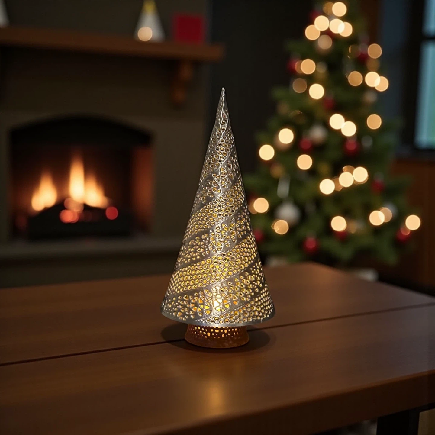 Add some festive sparkle to your home with this lovely silver Christmas tree! It's perfect for a table centerpiece or mantel decoration. The intricate design lets the light shine through beautifully, creating a warm and inviting atmosphere for the holidays. Includes a free tea light with each tree. I have a set of 4 so $25 if you buy the set.