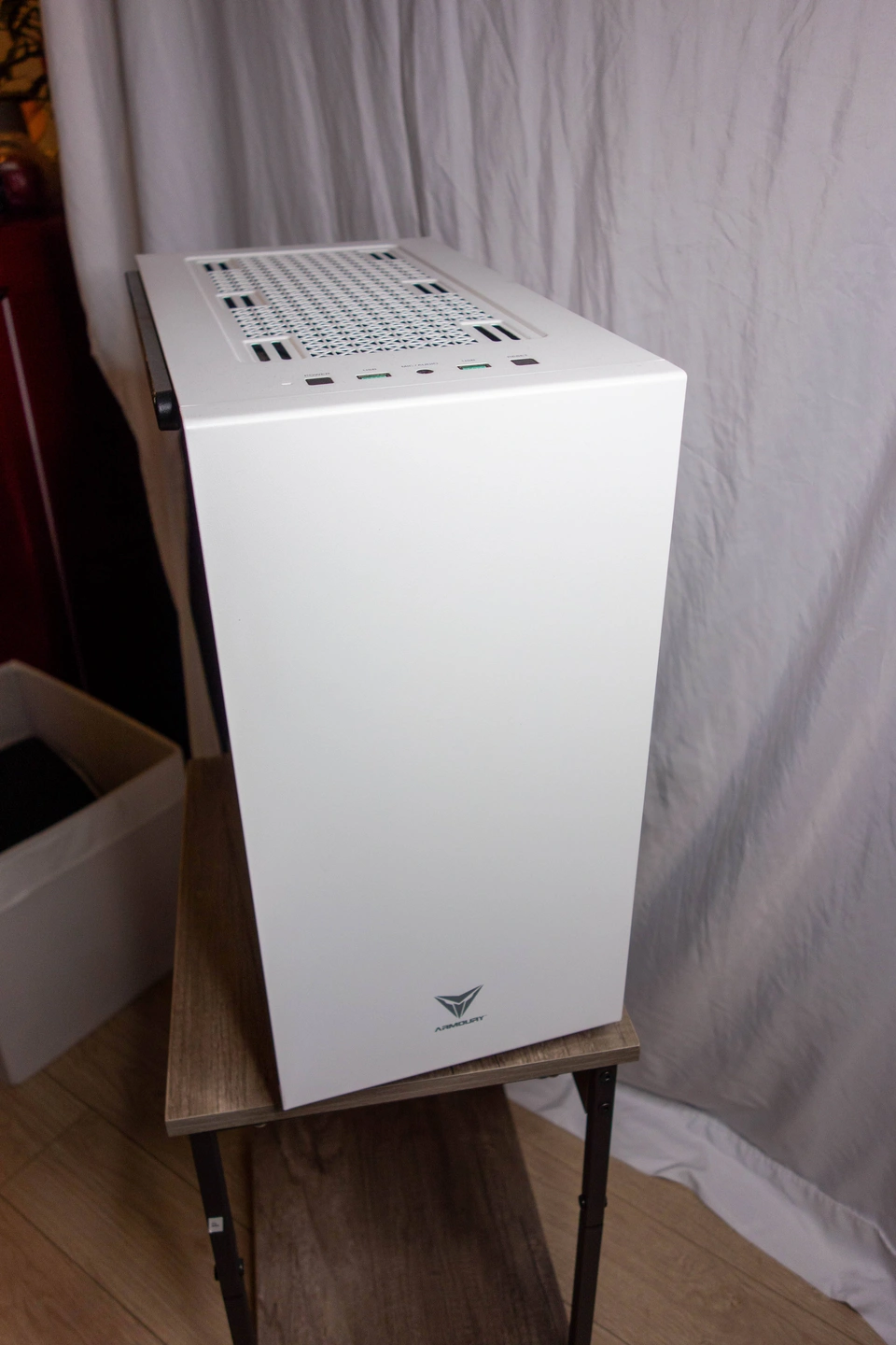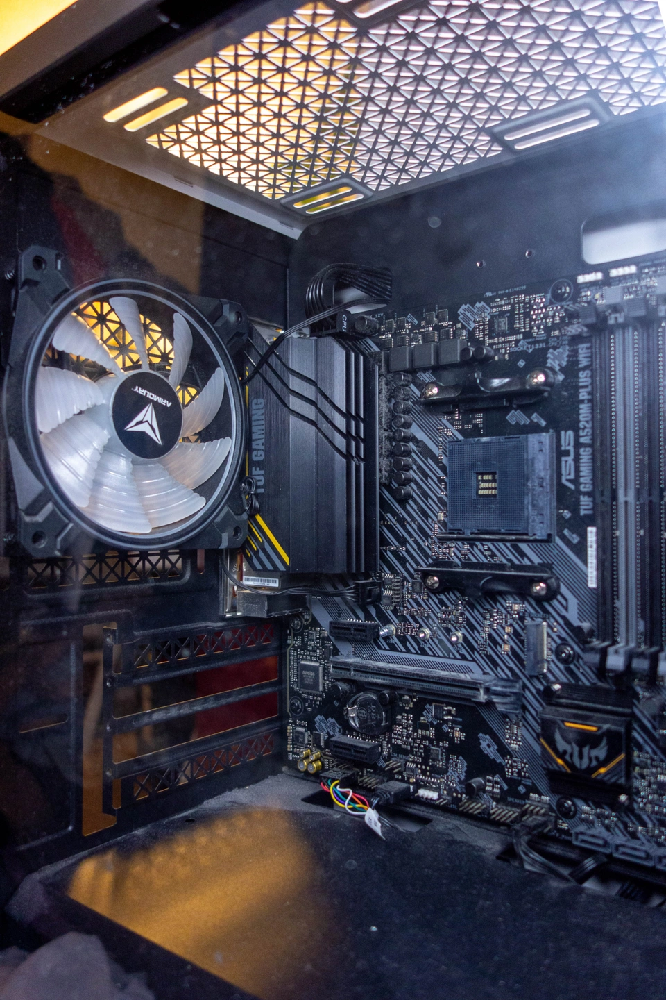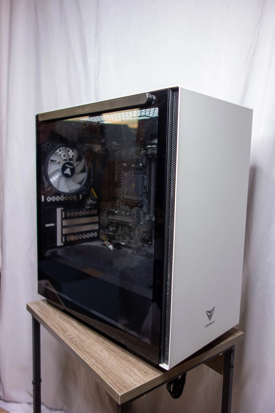 Selling an Armoury case (white, tempered glass) with an installed ASUS TUF Gaming A520M-PLUS WiFi motherboard (Micro-ATX, AM4), Corsair case fan, and PSU included. Clean, modern enclosure—great airflow, dust filters, and RGB potential. Ideal for anyone building a Ryzen or AMD desktop (CPU, RAM, GPU, and storage not included). Condition: Used, case and board both clean, no structural damage.