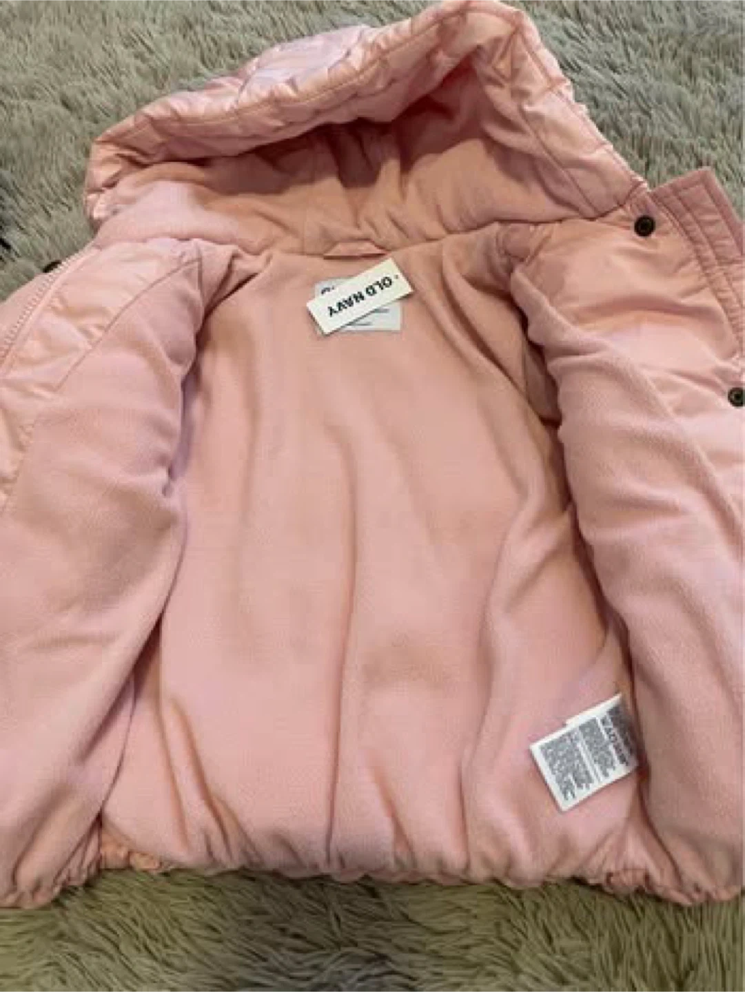 Selling a cute pink puffer jacket from Old Navy! INWT and perfect for keeping your little one warm and cozy. The jacket is a lovely shade of pink and has a hood for extra protection against the elements. It's super soft on the inside too!