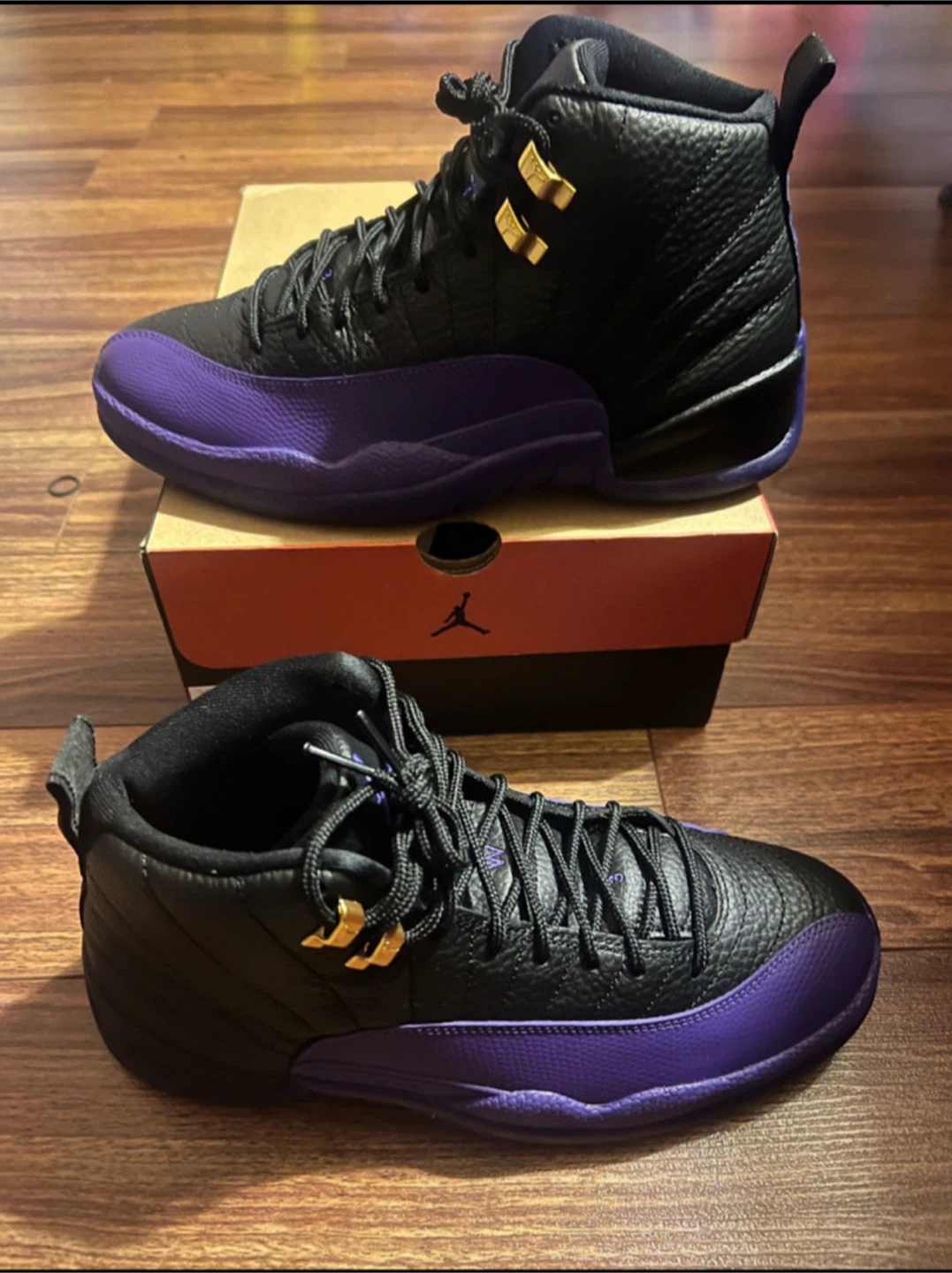 Selling a pair of Jordan 12 Retro in the Black Dark Concord colourway, size 8. Comes with the original box. Great for balling or just rocking around town!