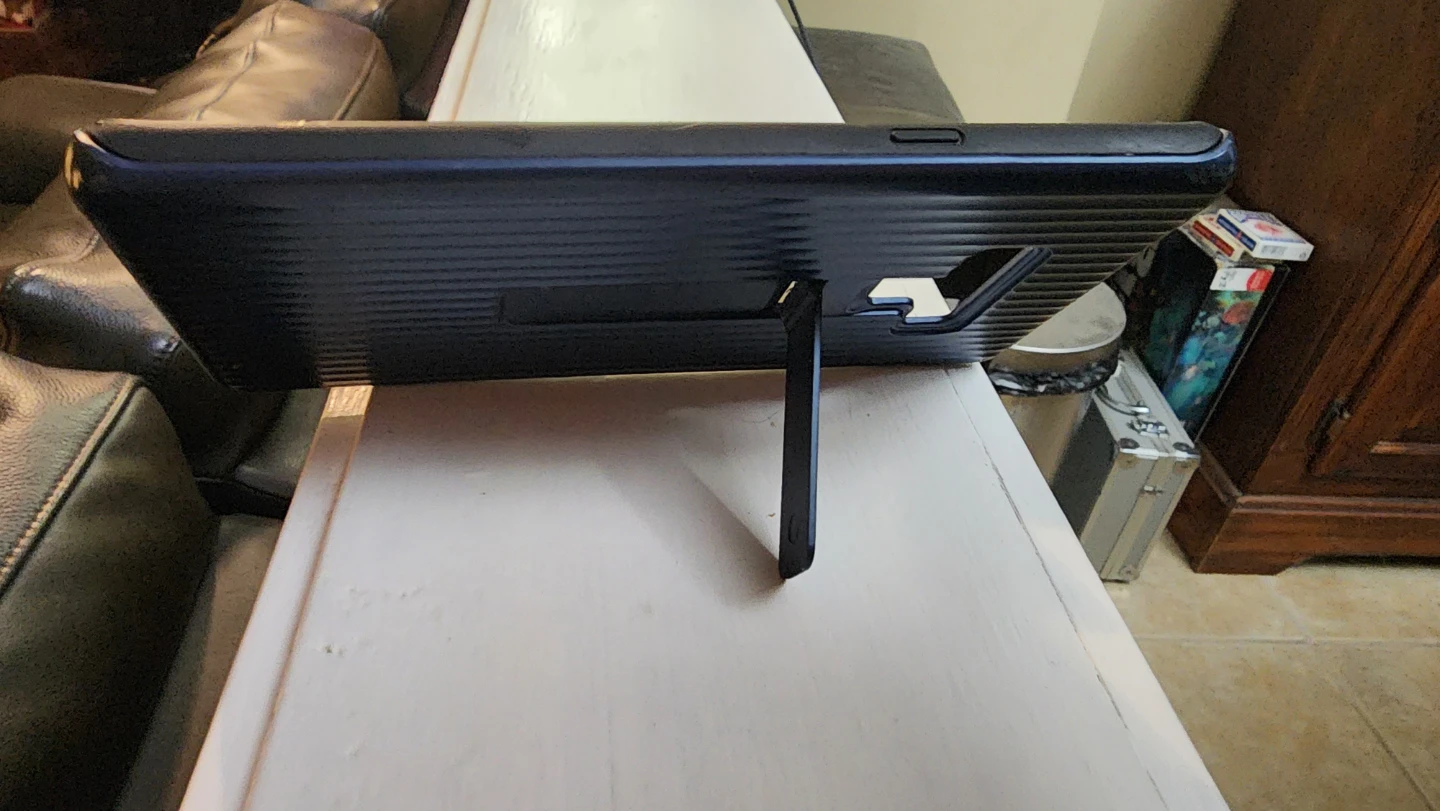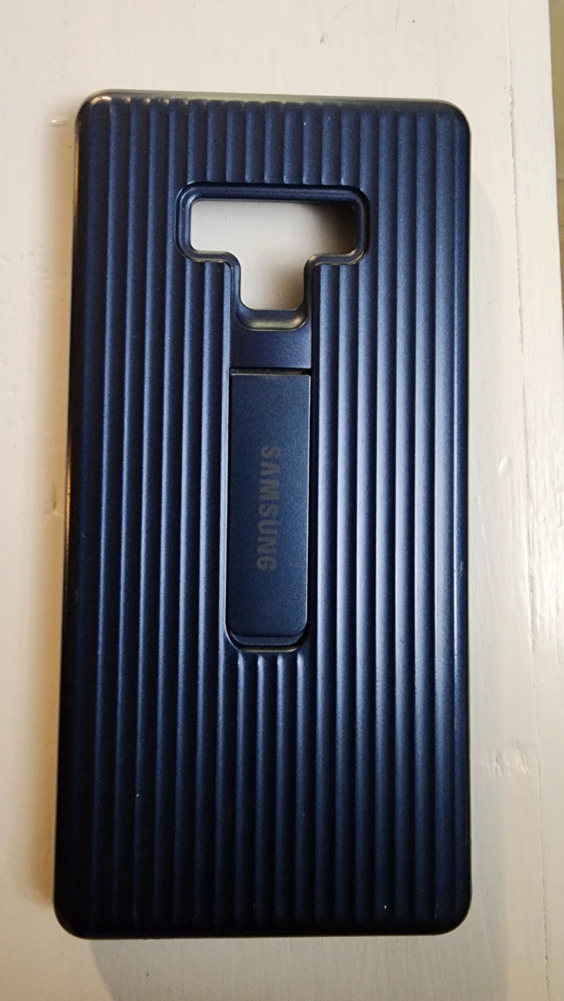 Selling a Samsung Galaxy Note 9 Protective Standing Cover in blue. It's in great condition and provides excellent protection for your phone. The built-in stand is perfect for watching videos or video chatting hands-free!
