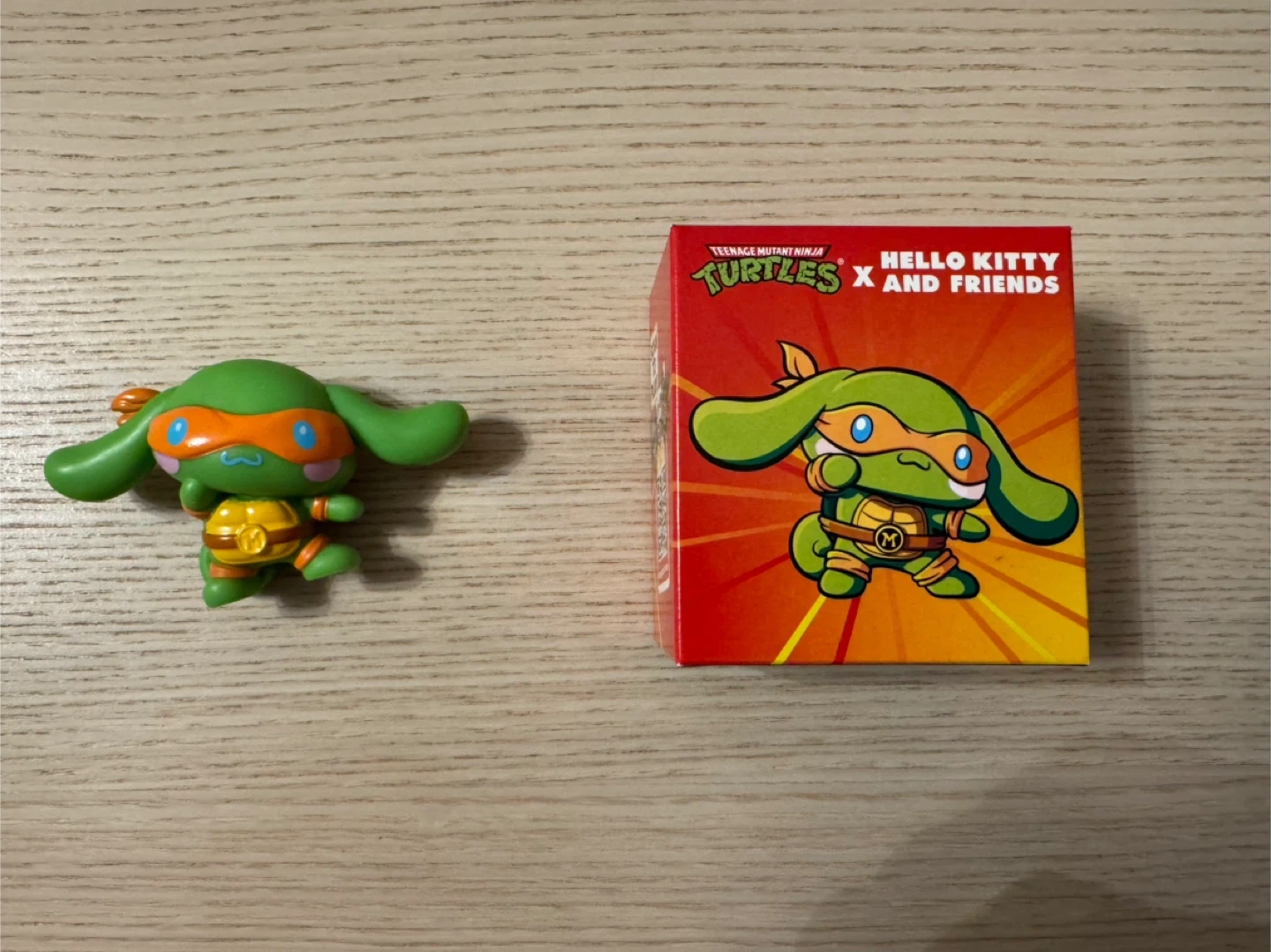 Selling a Teenage Mutant Ninja Turtles x Hello Kitty and Friends figurine. This is Cinnamoroll as Michelangelo. Comes with the original box.