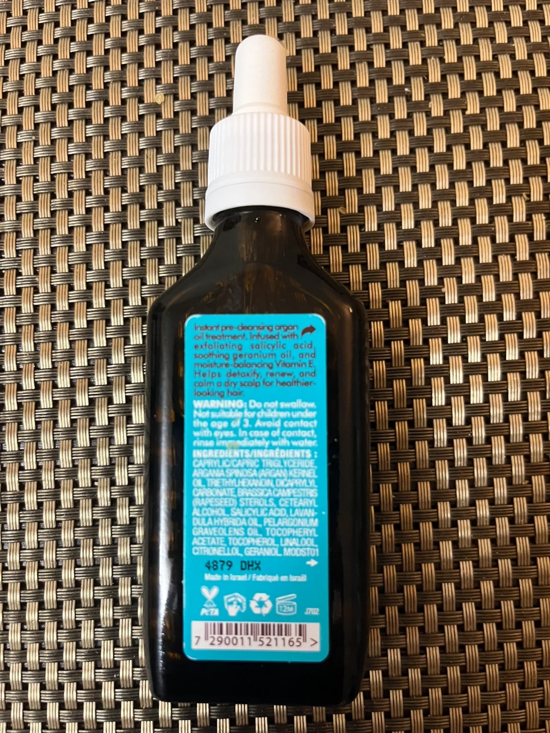 Selling a bottle of Moroccanoil Dry Scalp Treatment. It's a 45ml bottle designed to purify and rebalance the scalp. It helps detoxify, renew, and calm a dry scalp for healthier-looking hair