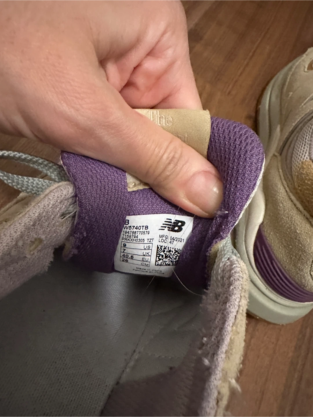 Selling a pair of New Balance 57/40TB sneakers in US size 9. These have a stylish beige and purple colour scheme. They are in good condition!