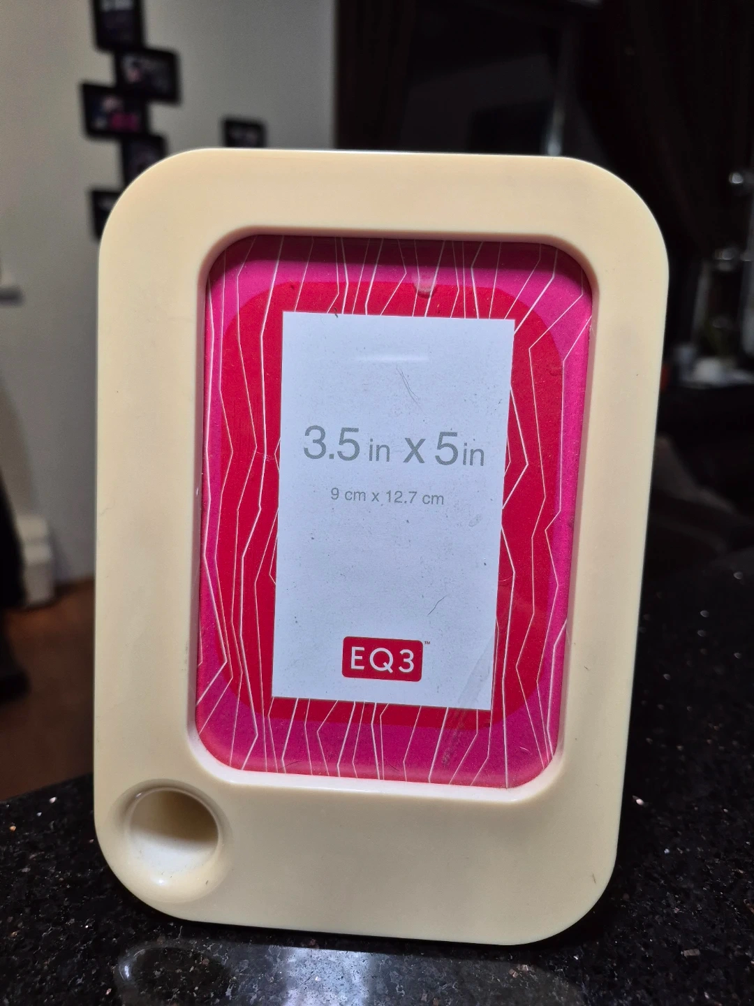 102Selling a set of 4 EQ3 photo frames, perfect for displaying your favourite memories! They are sized at 3.5 inches by 5 inches (9 cm x 12.7 cm). Available in red and cream.