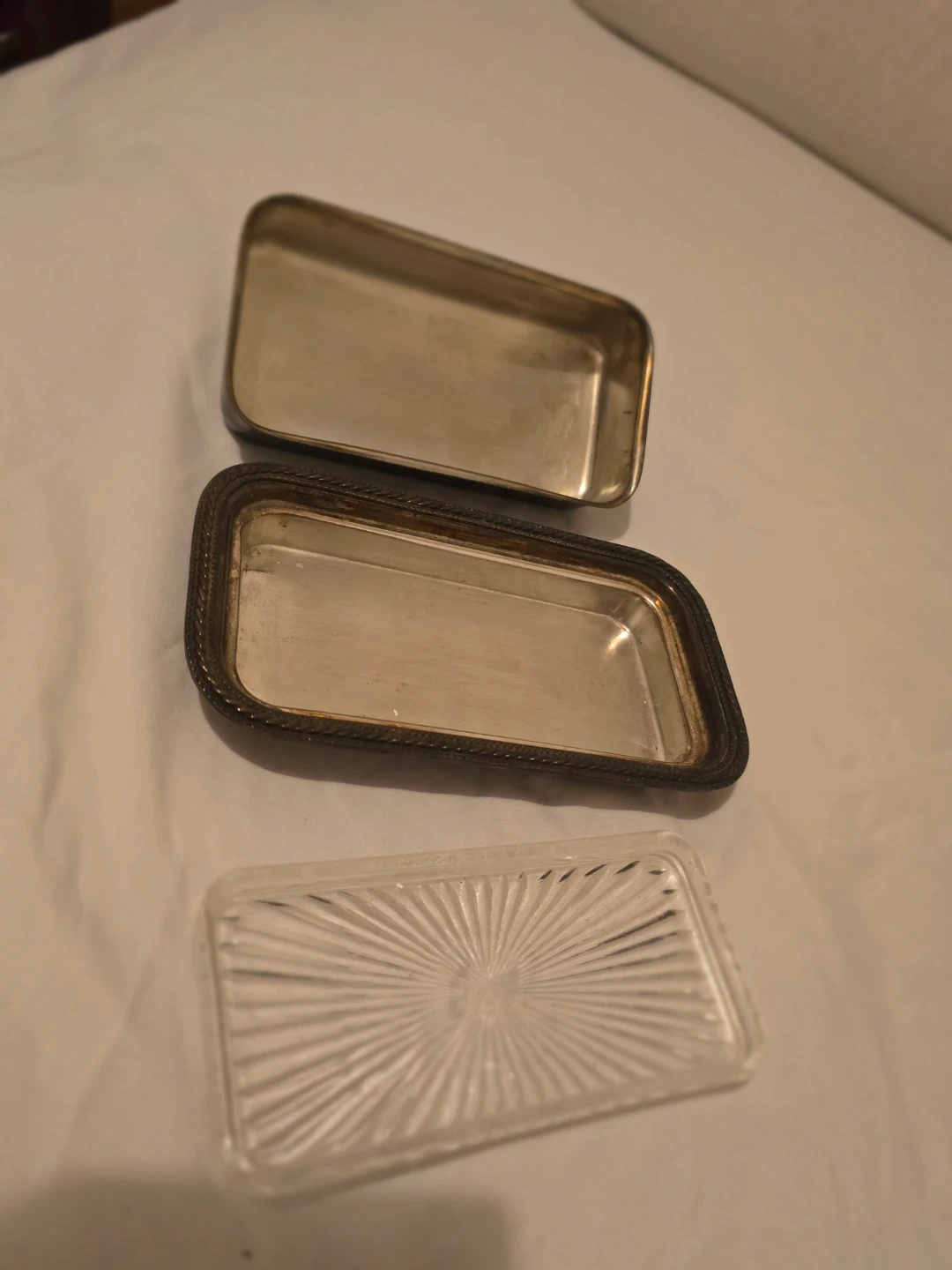 Selling a vintage silver plated butter dish. It comes with a glass insert and a lid. The silver plating shows some signs of wear, adding to its vintage charm. Perfect for adding a touch of elegance to your table!
