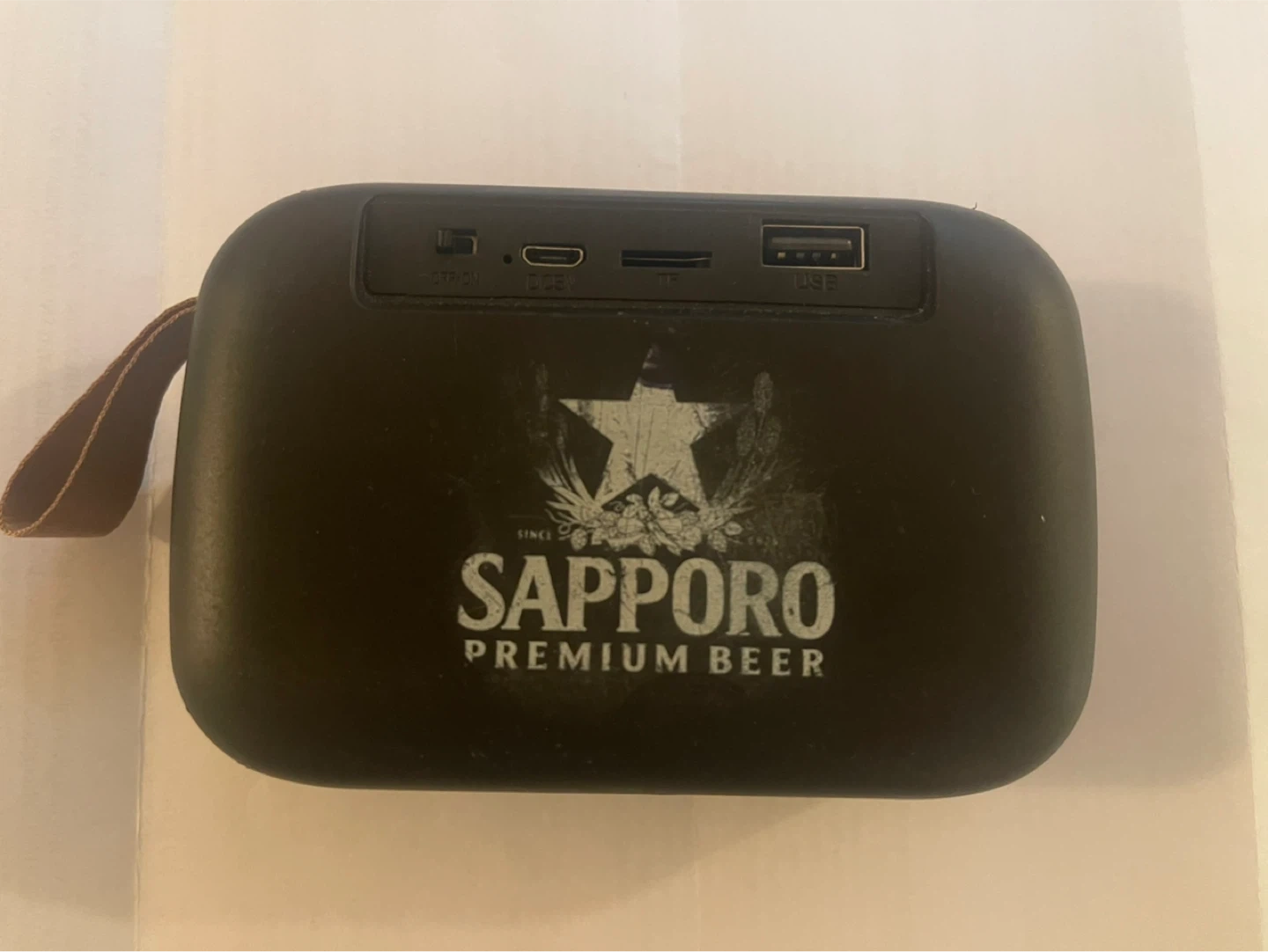 Selling a Sapporo Premium Beer Bluetooth speaker. It has a handle and multiple ports. New