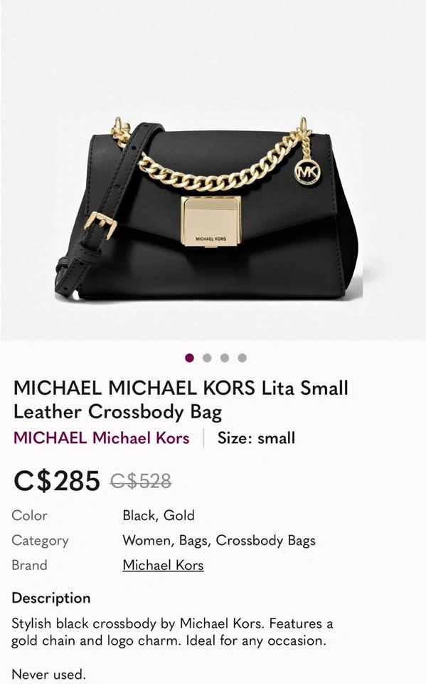 Michael Kors Lita Small Leather Crossbody Bag – Black/Gold ✨