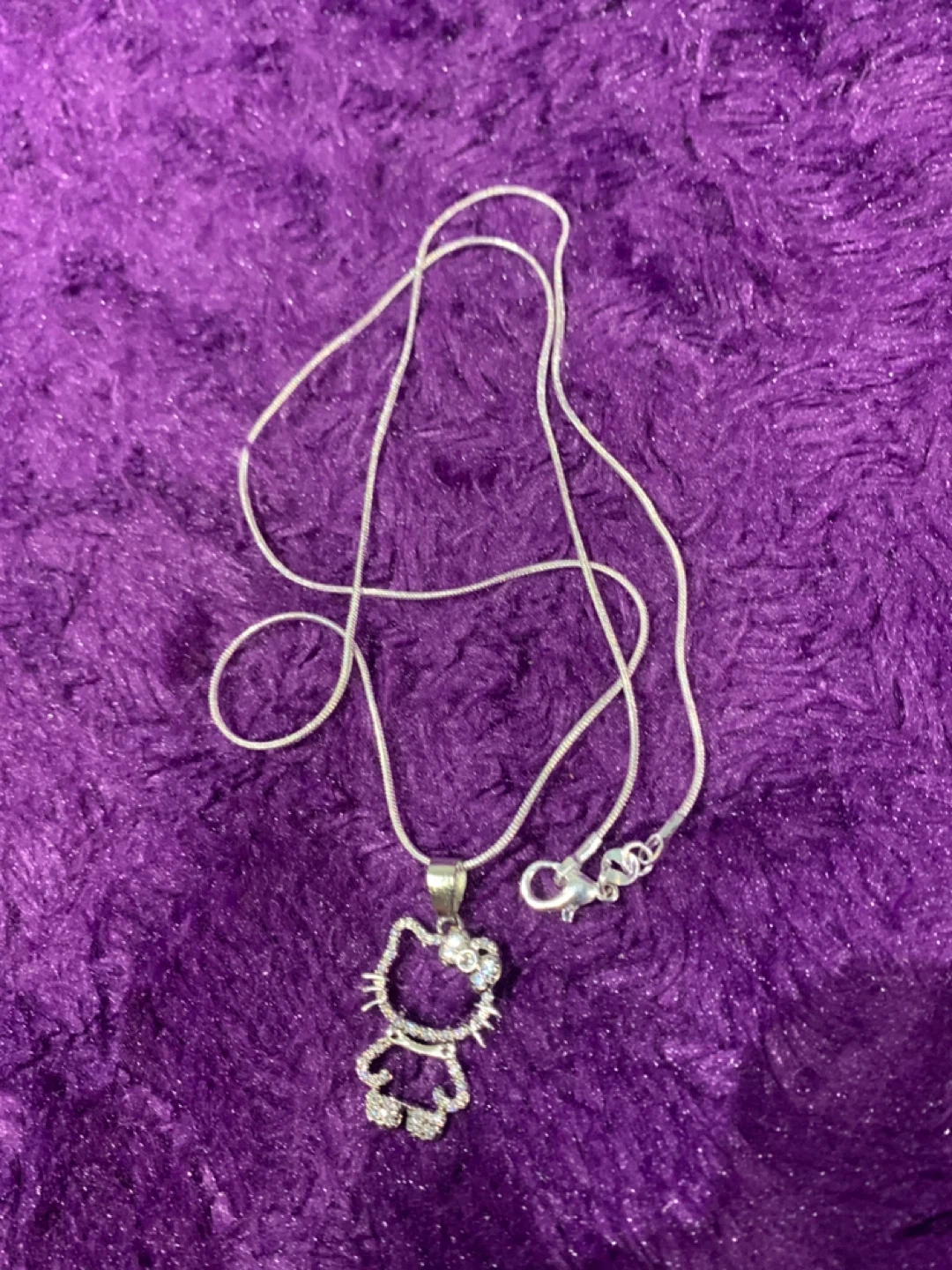 1000+Cute Hello Kitty necklace with a 925 silver chain! In great condition and ready to add some sparkle to your day