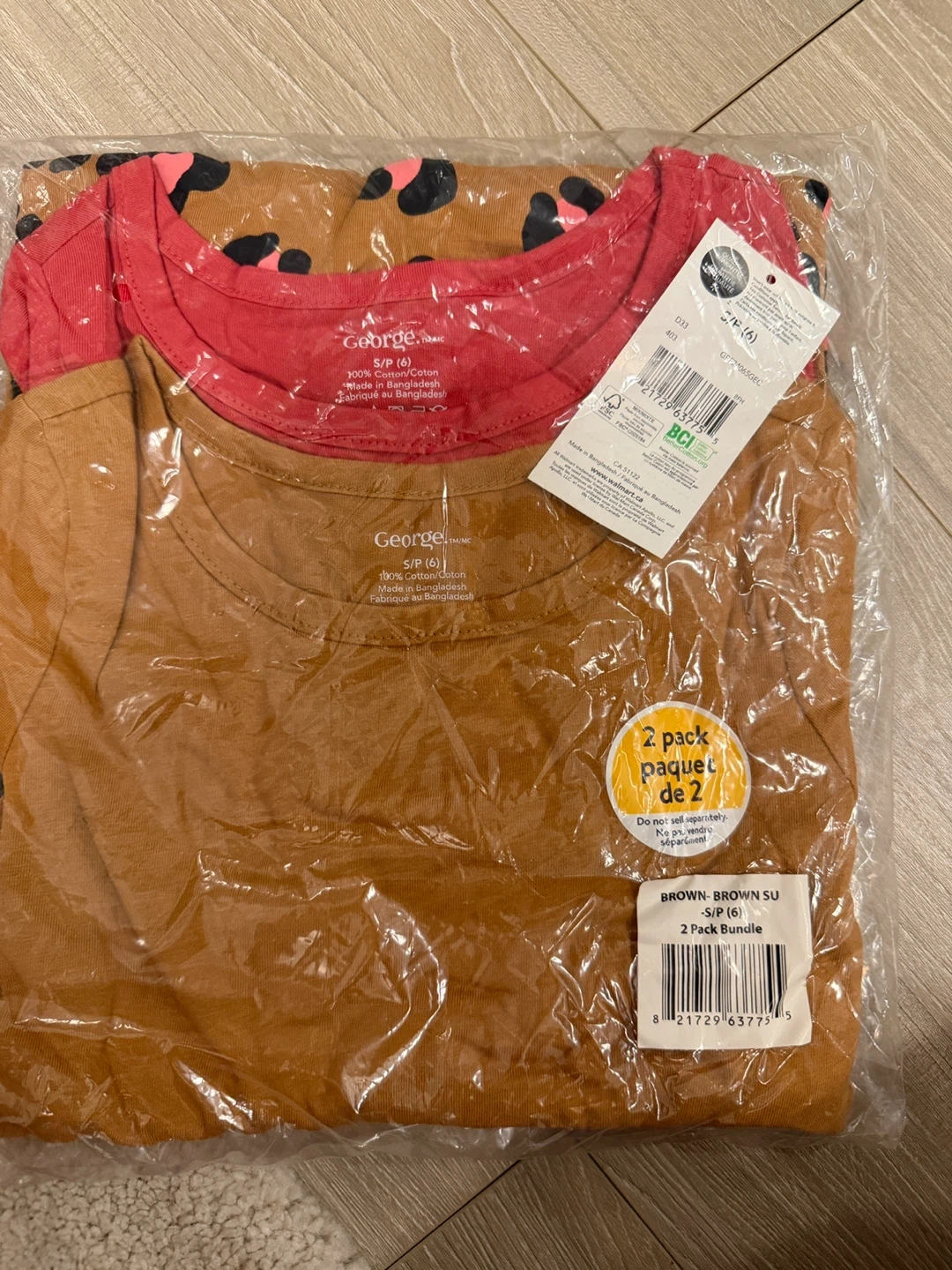 I'm selling a brand new 2-pack bundle of kids' shirts from George! They are size S/P (6) and come in brown and brown/leopard print. They're still in the original packaging!