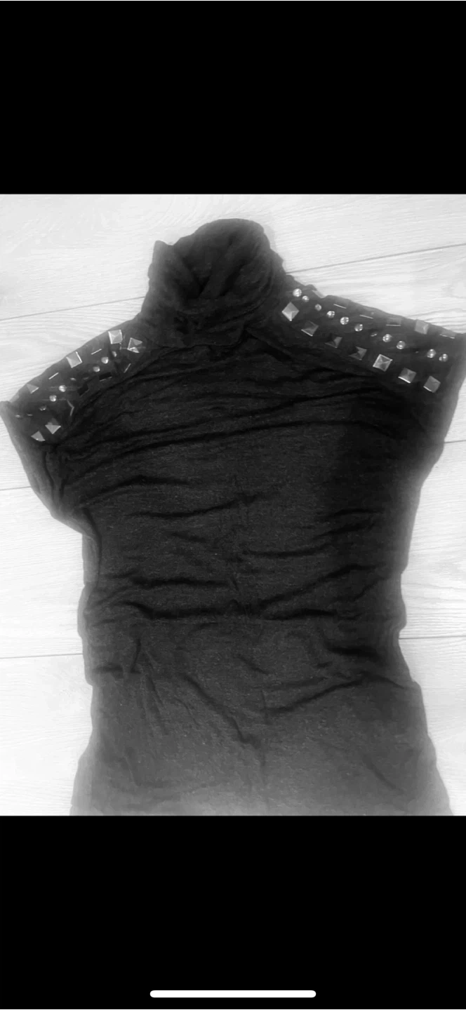312This is a dark grey turtleneck top with studded shoulder details. It's in great condition and ready for a new home!like new !