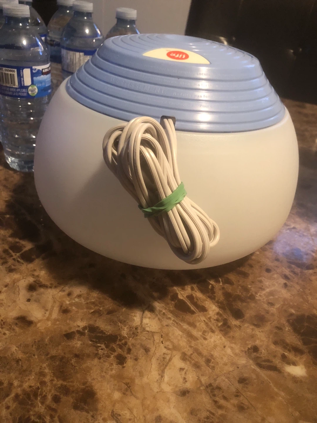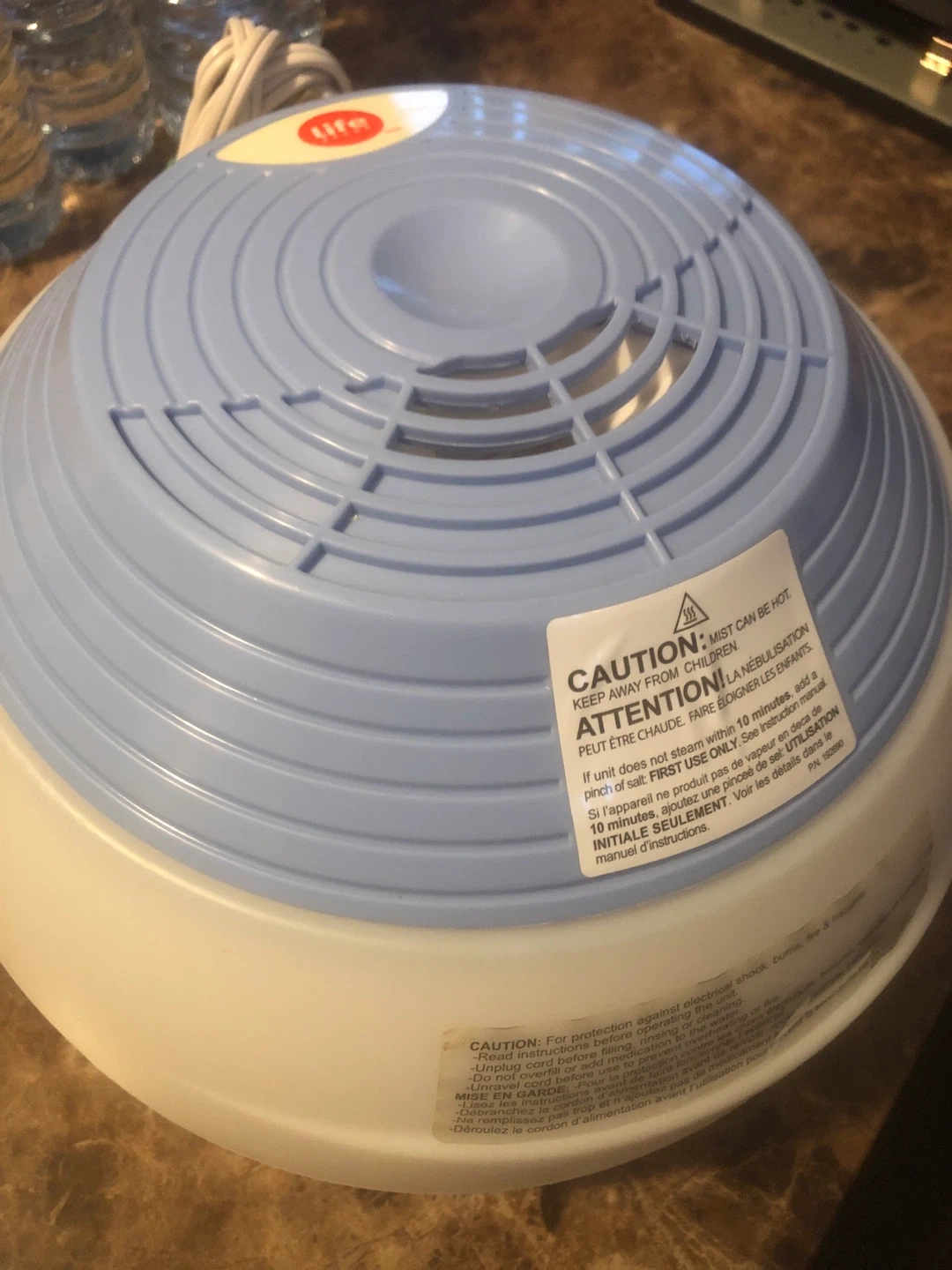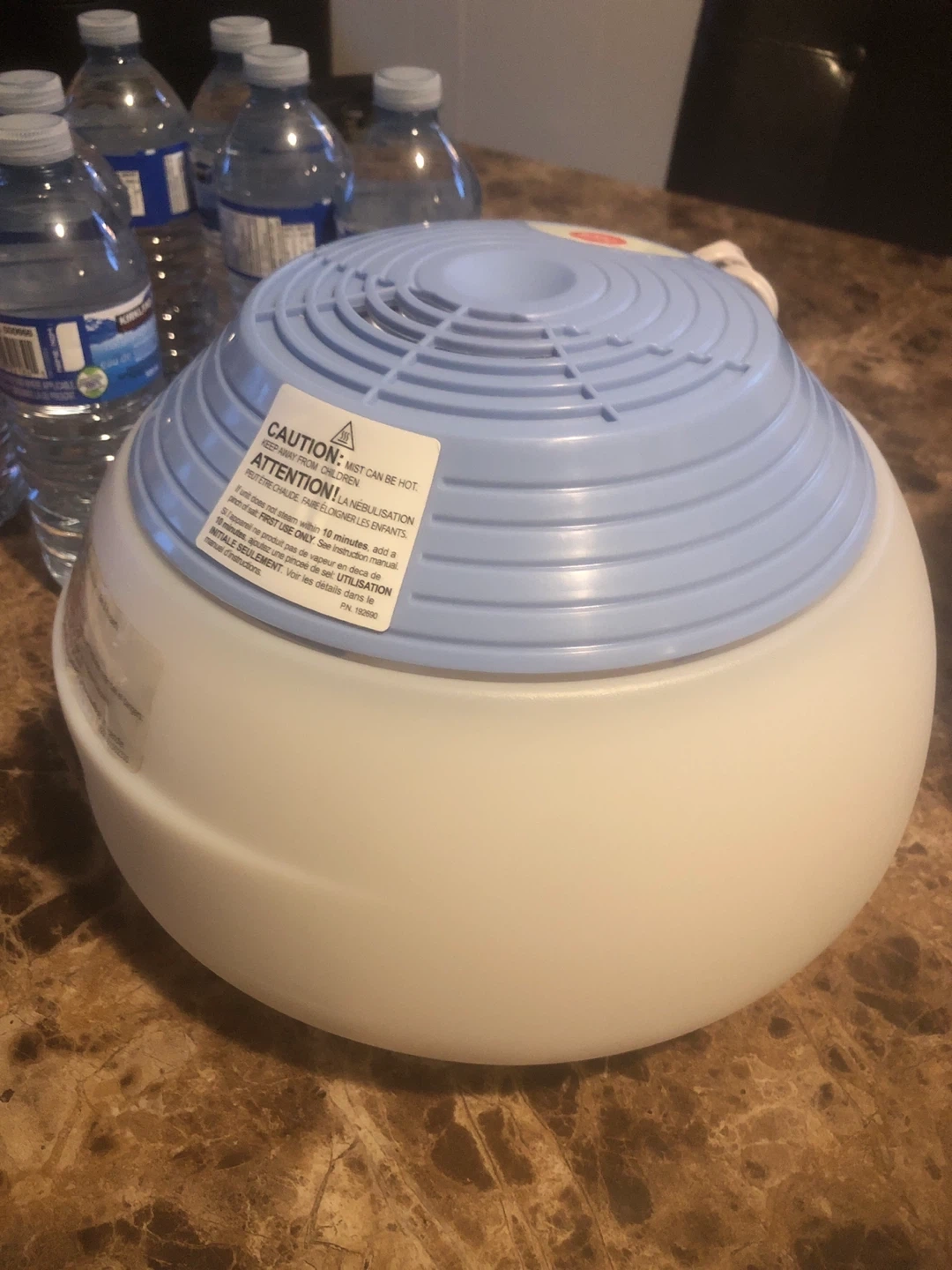 133Selling a used humidifier that can produce cool mist. It's in good condition and ready to use in your home. It has a white and light blue colour scheme.