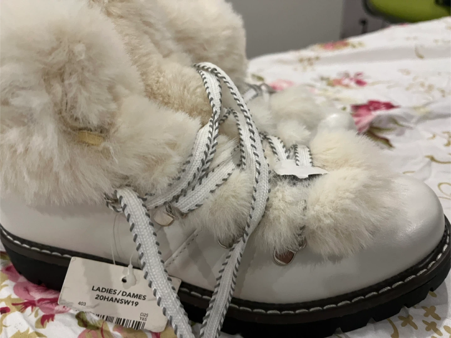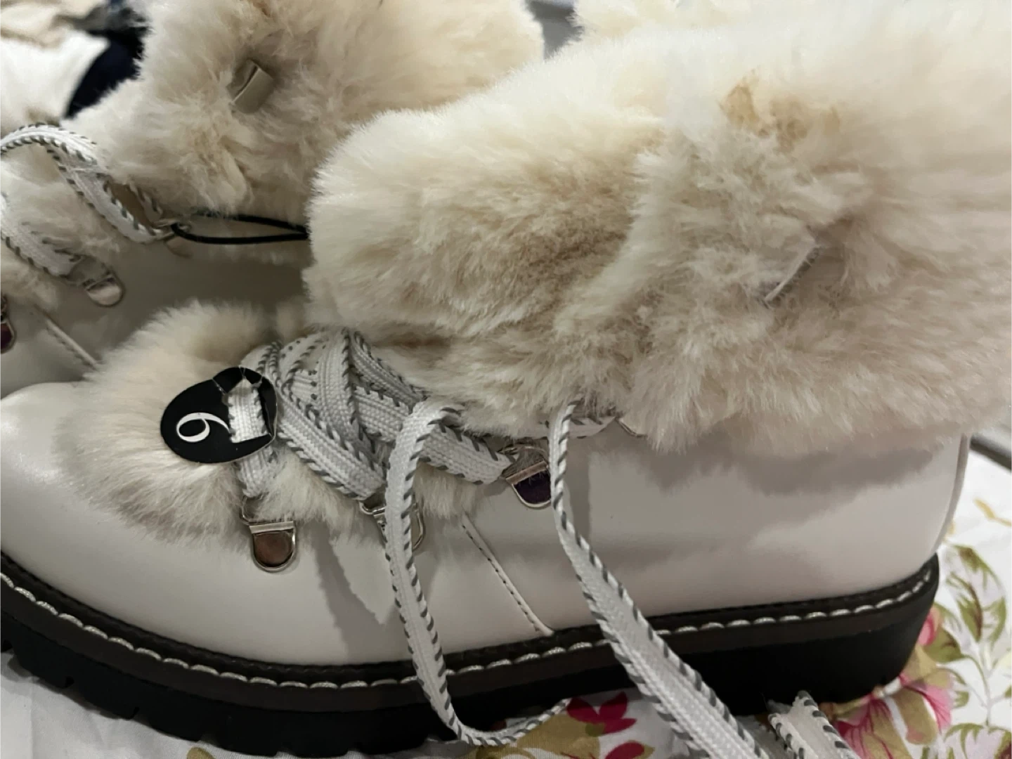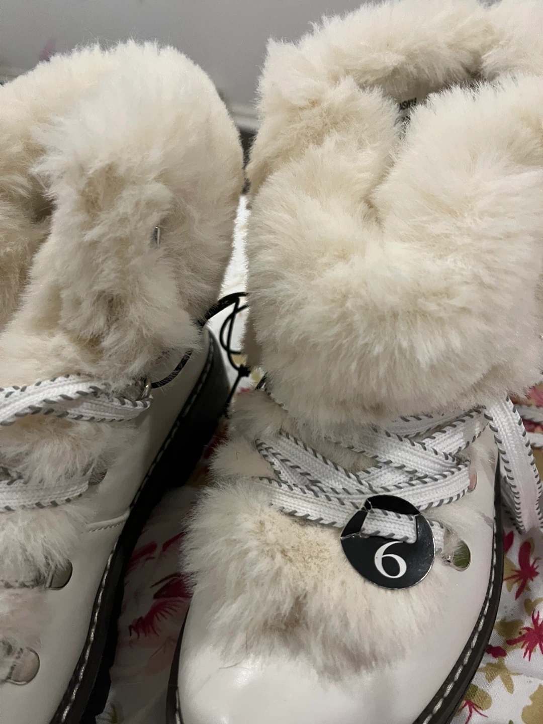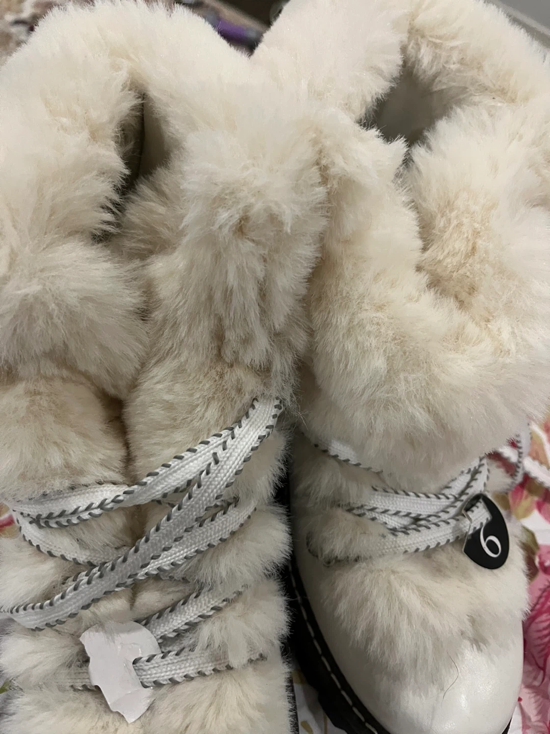 Cozy white winter boots in a women's size 6. These are perfect for keeping your feet warm and stylish during the colder months!