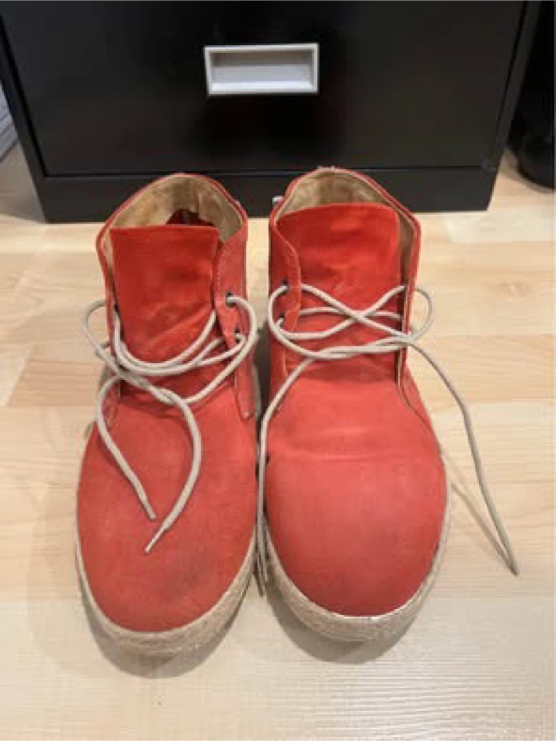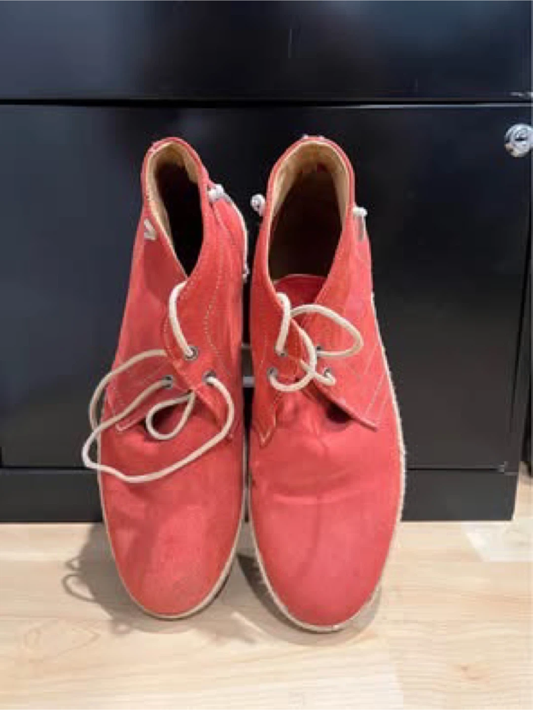 Selling a pair of Original Penguin chukka boots straight from Italy in a vibrant red suede! They have a unique espadrille-style trim around the sole. These boots are in good used condition and ready for a new home!