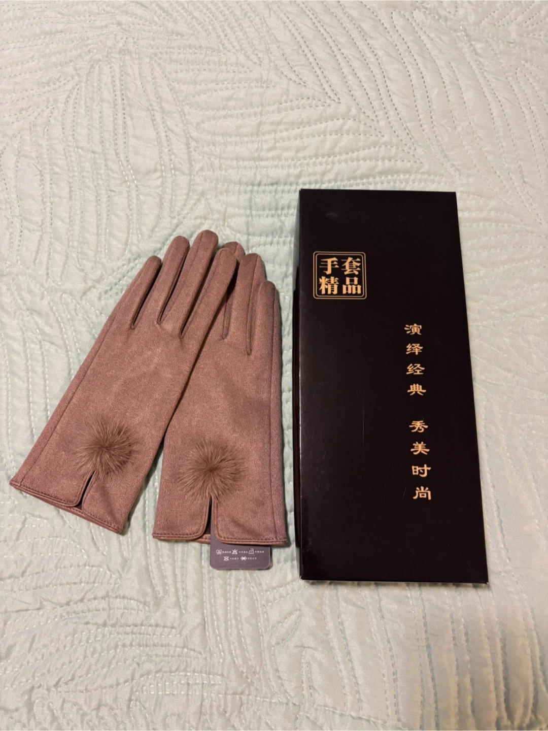 Light brown Gloves with Fur Pom Poms,brand new with box! π₯°