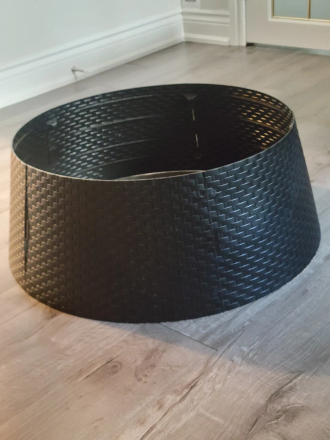 103Add a touch of elegance to your Christmas tree with this used, but like-new, Black Basketweave Magnetic Tree Nest! This stylish tree skirt features a unique basketweave design and a convenient magnetic closure, making it easy to set up and take down. It's the perfect way to hide your tree stand and create a polished look for your holiday display. This item is in excellent condition. * Easy to set up with magnetic closure * Stylish basketweave design * Hides unsightly tree stands * Adds a touch of elegance to any Christmas Tree. 6 pieces. So easy to set up and small to store. 22" diameter 10"tall plastic $30 Firm retail is $50 plus tax. Fennell and Upper gage Hamilton Please click on my many ads for sale