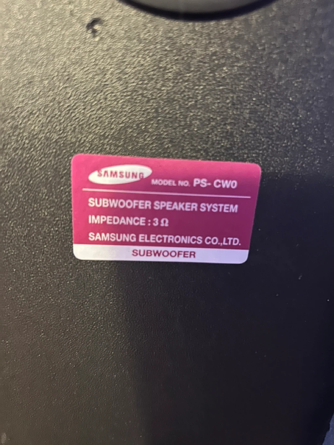 Selling a Samsung PS-CWO subwoofer speaker. It's in great condition and ready to boost your sound experience! It comes with its original box, so it will be easy to transport