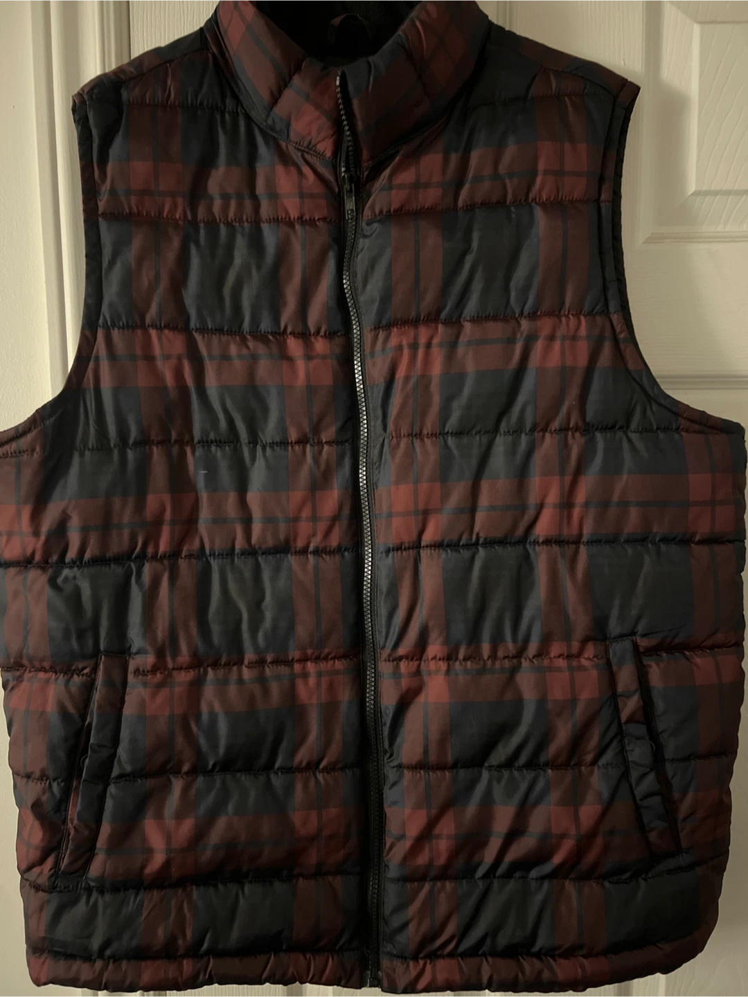 A Gap puffer vest in a plaid pattern. Size large and in great condition!