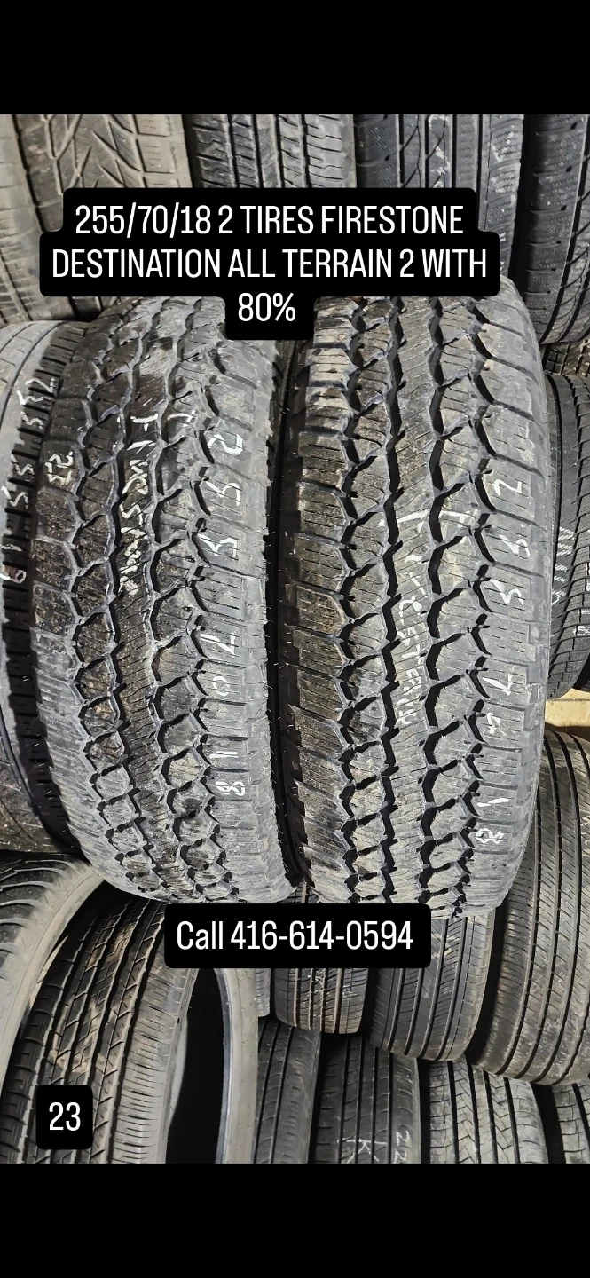 27$70 EACH Selling a pair of Firestone Destination All Terrain 2 tires, size 255/70/18. They're in great shape with about 80% tread remaining! CALL 416-614-0594
