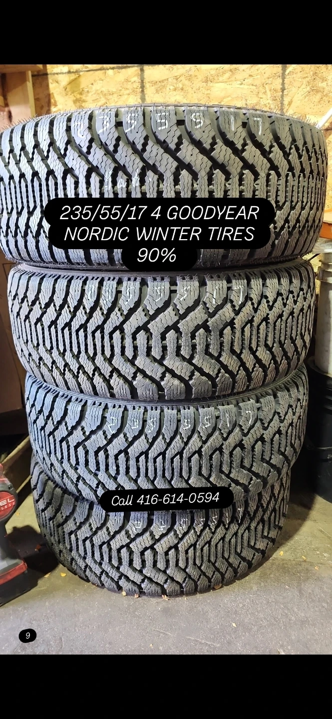 27$60 EACH Selling a set of 4 Goodyear Nordic winter tires. The size is 235/55/17 and they are at 90% tread CALL 416-614-0594