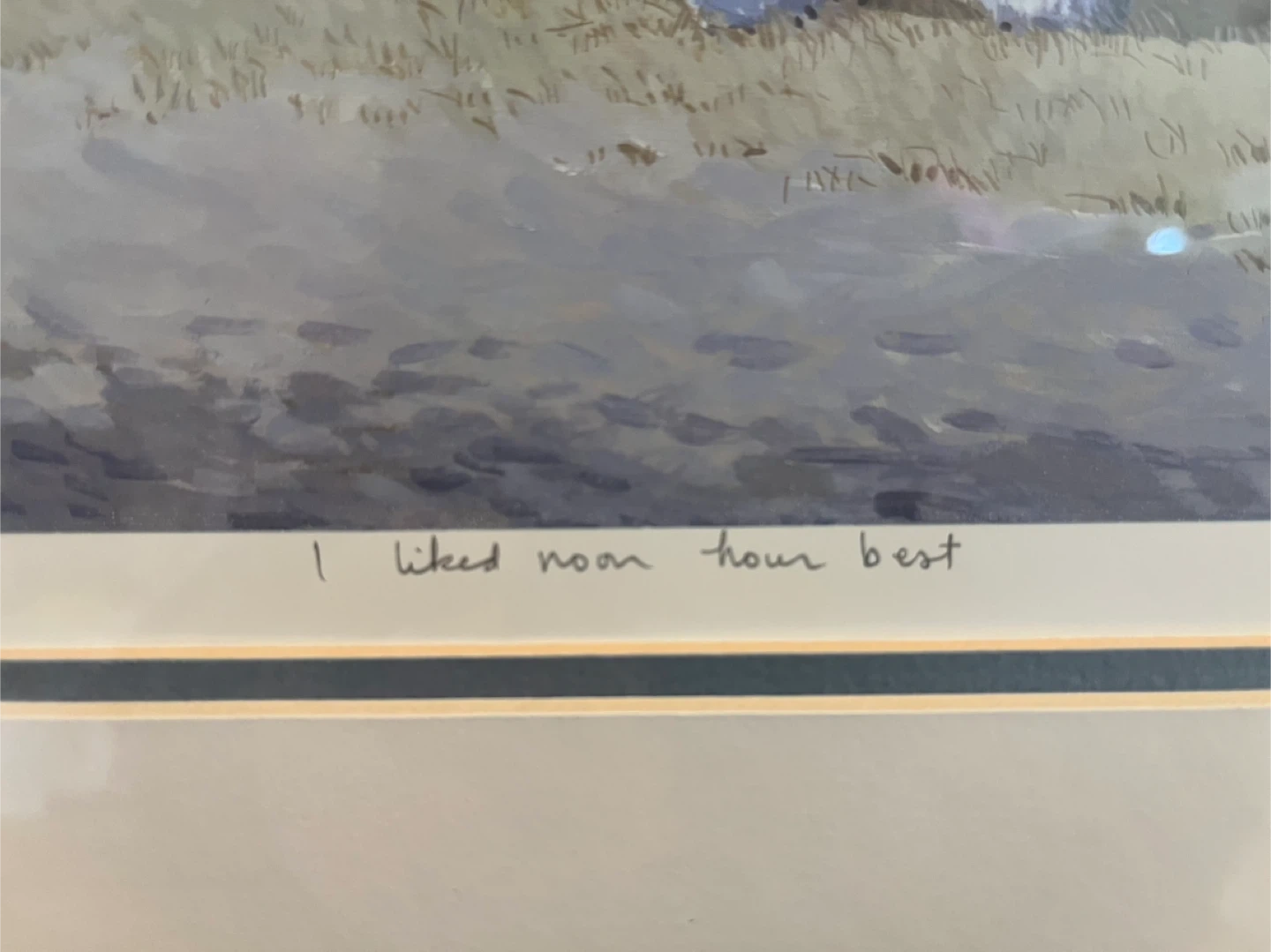 This is a framed vintage print by award winning Ukrainian Canadian artist Peter Shostak titled "I liked noon hour best", low in the print run, 88/300, and signed by the artist. It's a lovely collector’s item, typical of his mature career style. Likely the image is part of his 1991 series of 50 pieces entitled “For Our Children”. (Check out his bio online.)