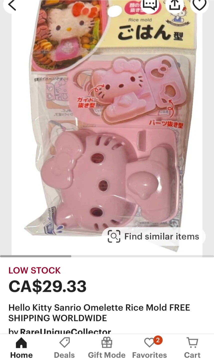 I'm selling a Hello Kitty Sanrio omelette rice mold! It's a super cute way to make your food more fun. Originally bought for $29.33. The material is polypropylene and heat resistant to 100°C (212°F)