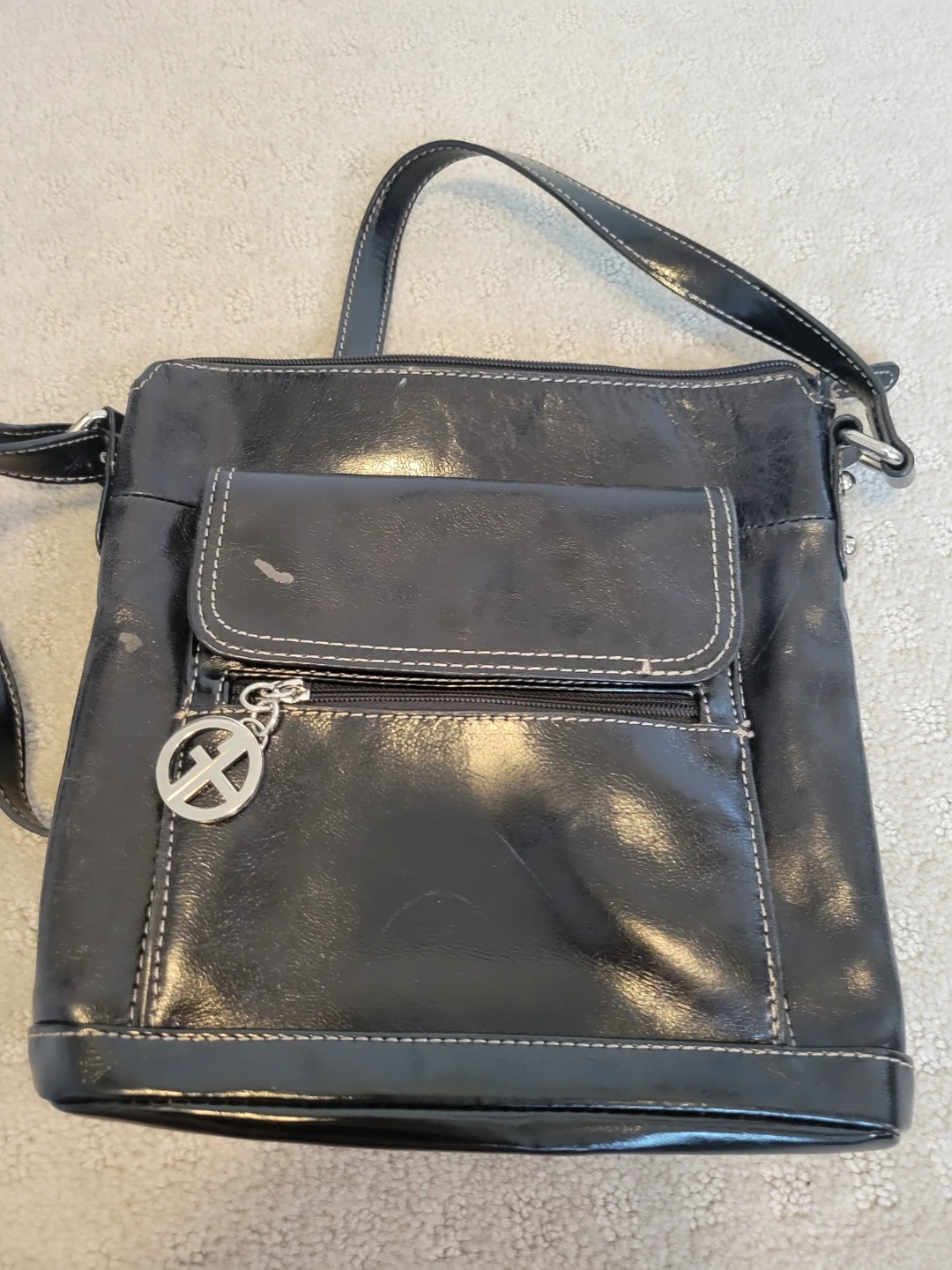 302Selling a St. John's Bay crossbody bag in black. It features a convenient size and stylish design, perfect for everyday use. It has a zipper closure and an adjustable strap.