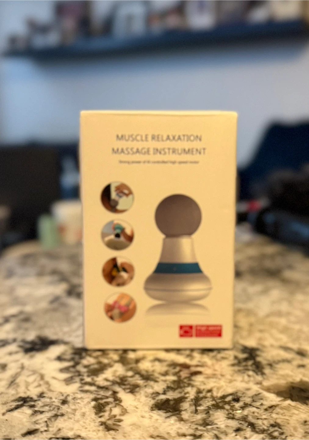 Open box but brand new and never used. Compact handheld massager with soft foam head — great for neck, shoulders, back, or legs. Features multiple vibration modes, one-button control, and USB-C charging.
