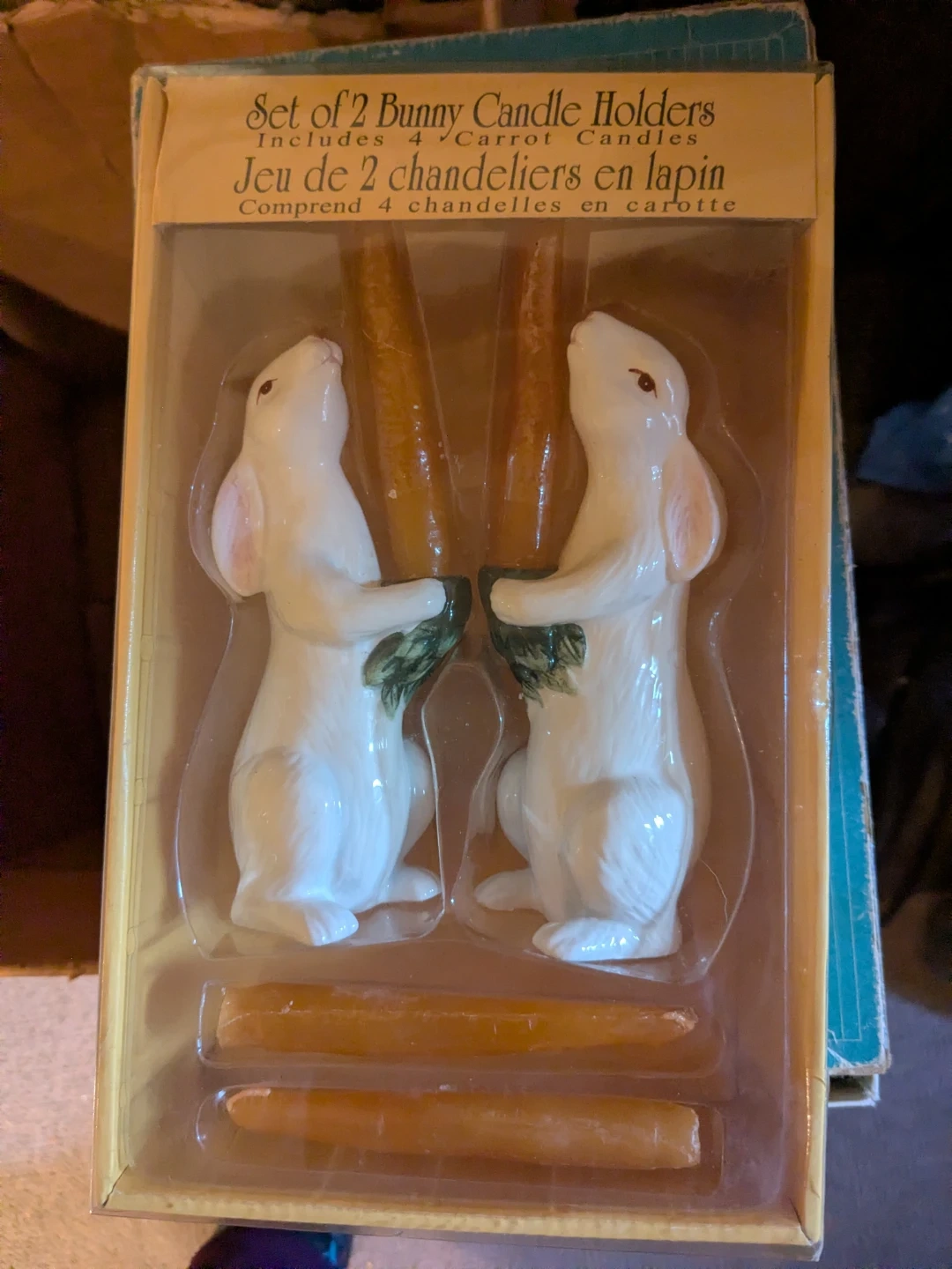 Buy & SellSet of 2 Bunny Candle HoldersSet of 2 Bunny Candle Holders$6Selling a set of 2 bunny candle holders! It includes 4 carrot candles and comes in the original packaging new never used 0 chats·0 favorites·1 viewsSELLERJaniceKitchener-Waterloo261 reviewWHERE TO MEETKitchener