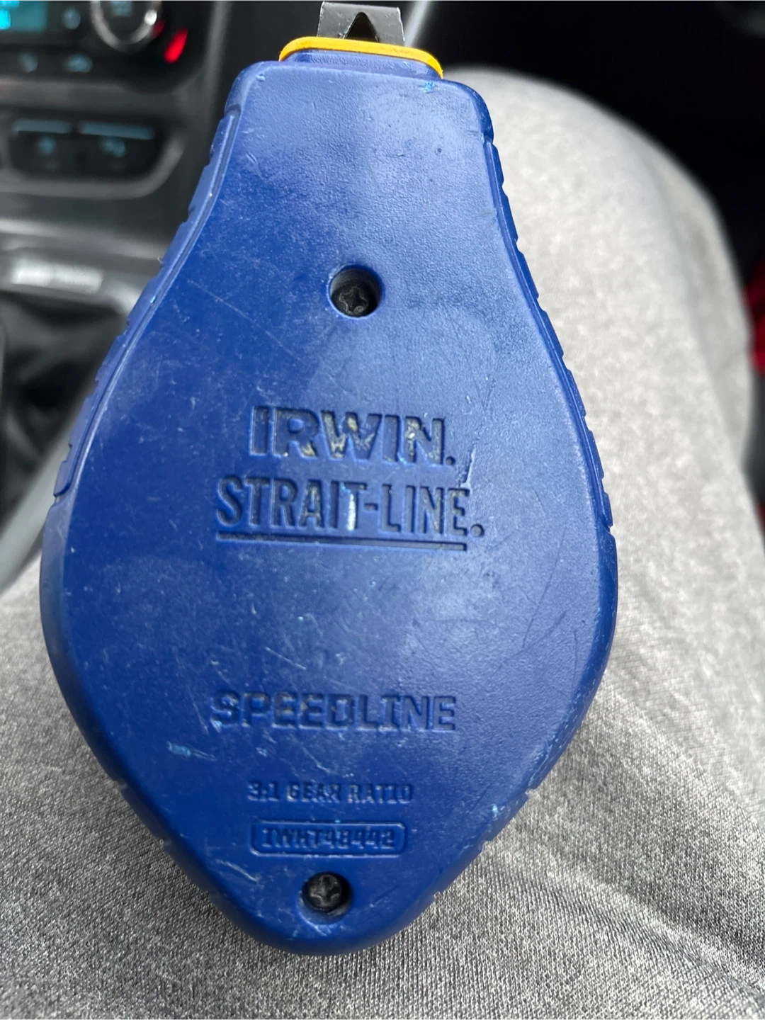 Selling an Irwin Strait-Line Speedline chalk reel in blue and yellow. It has a 3:1 gear ratio and is in good condition. Perfect for your next project!