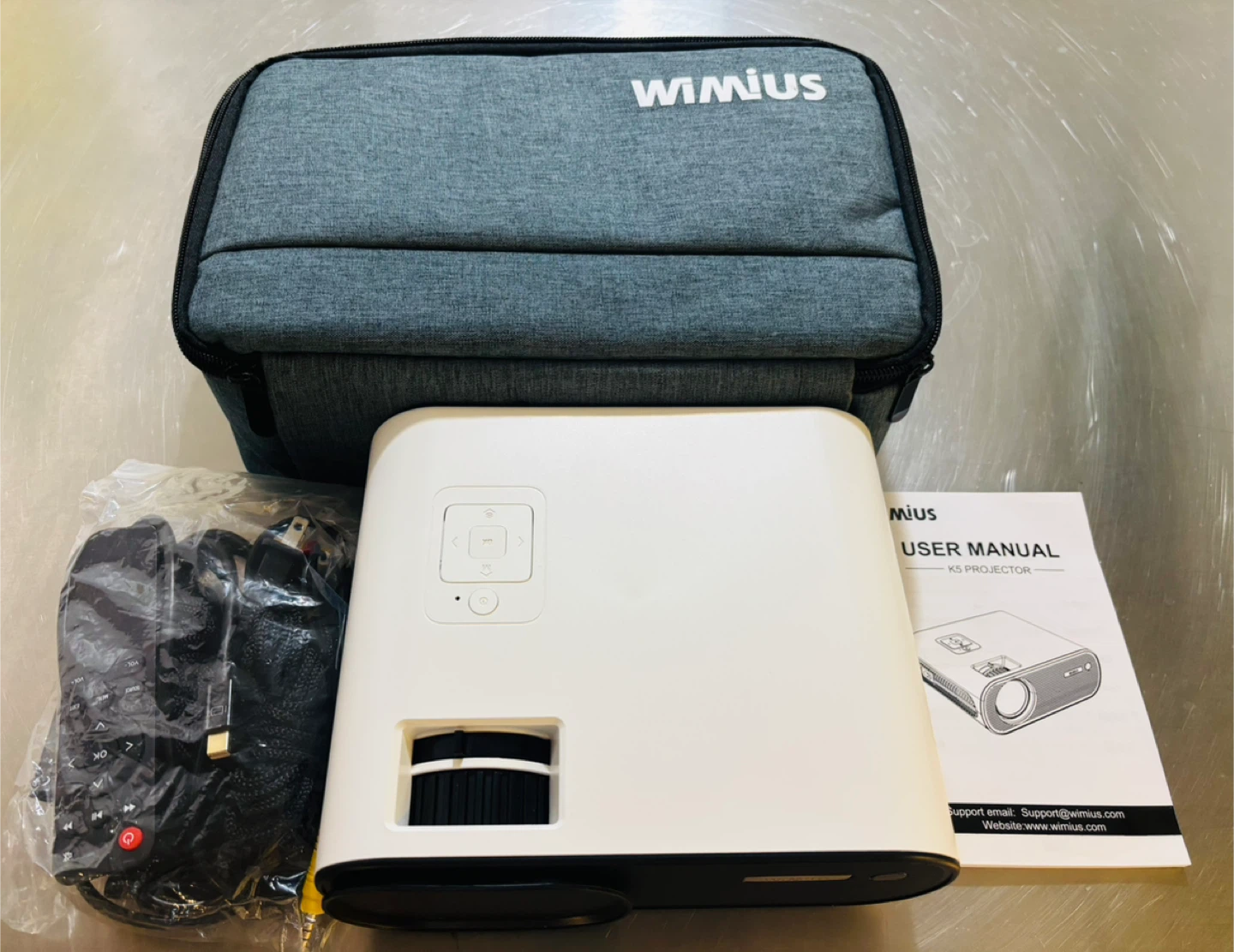 Selling a WiMiUS K5 Mini Beamer portable LED projector. It comes with its original box and user manual.