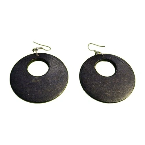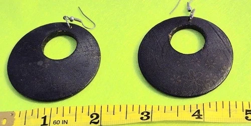 103Lightweight wood carved danglers with understated flower motif Lightly worn