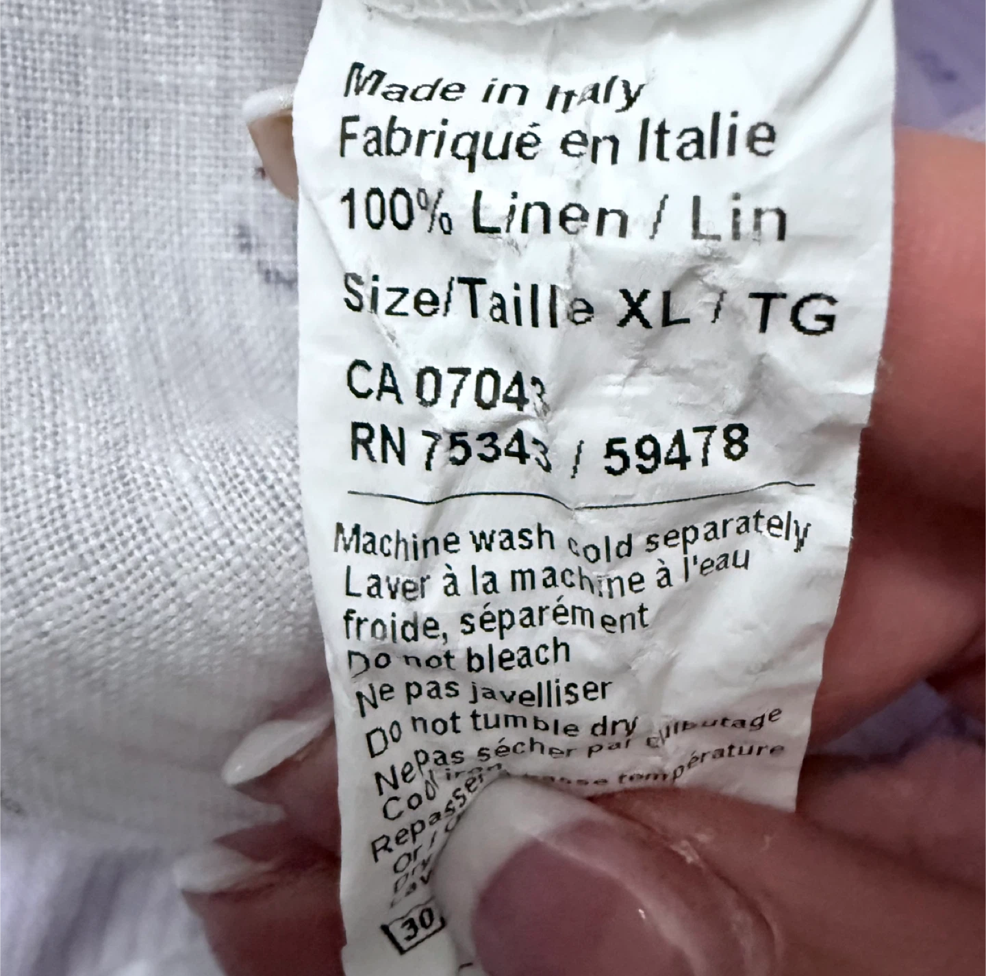 Here's a FOCUS linen shirt in size XL! It's made in Italy and features a fun anchor pattern. The material is 100% linen, perfect for staying cool and comfortable. It's in great condition and ready for a new home!