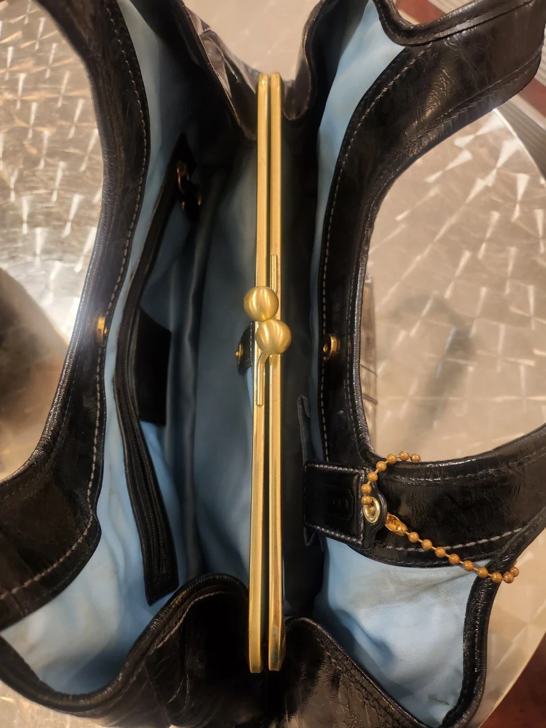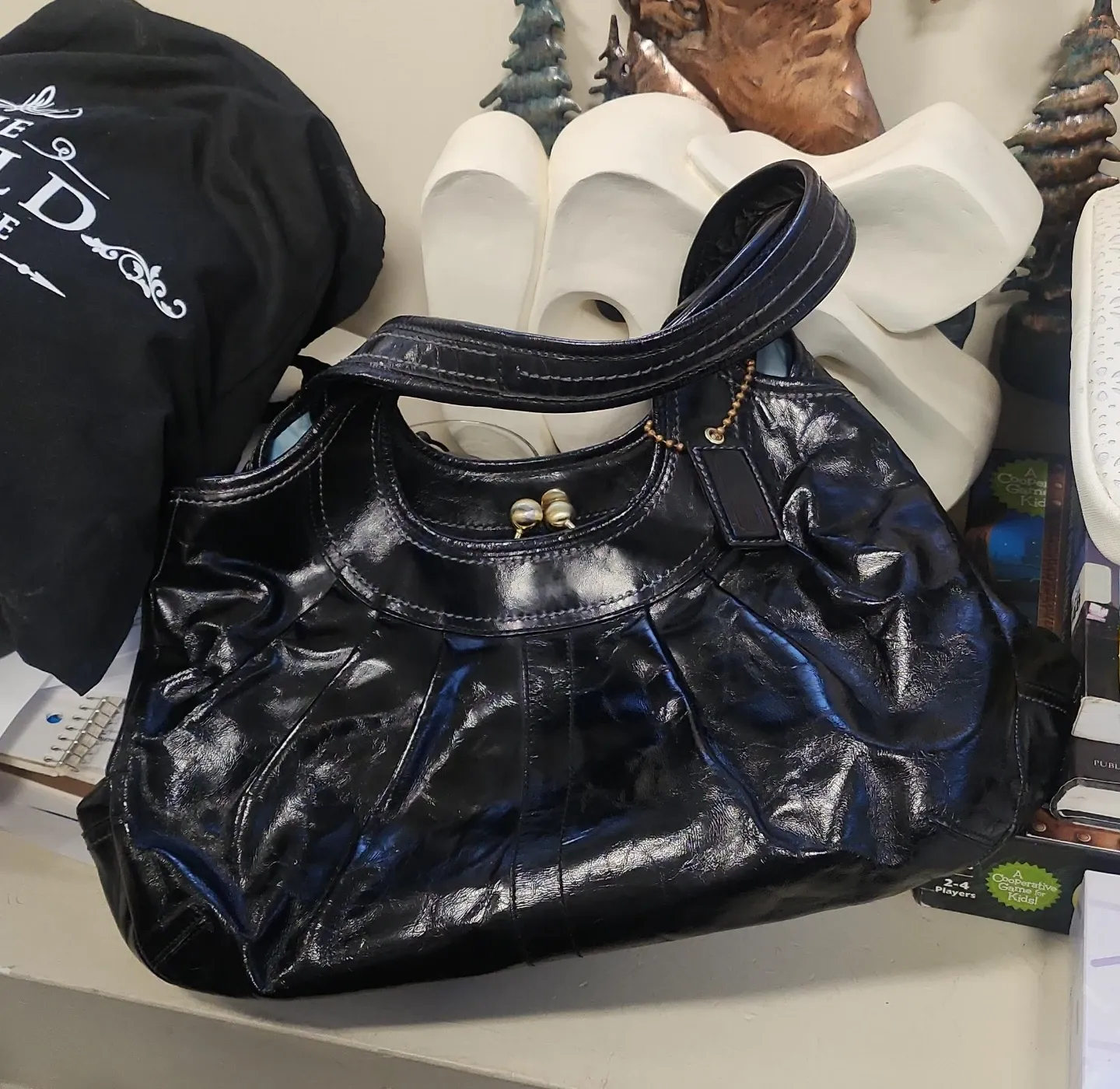Selling a stylish vintage special edition Coach handbag in black patent leather! It's a beautiful purse with brass accents that's perfect for adding a touch of elegance to any outfit. Great for everyday use or special occasions