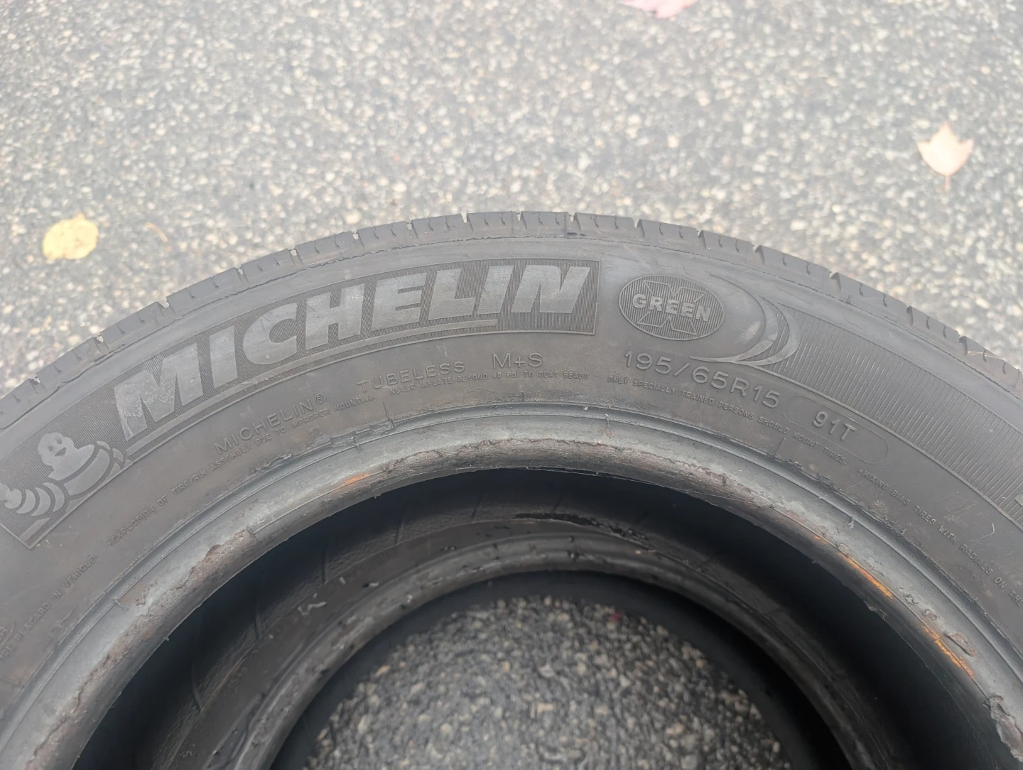 Selling a set of Michelin Defender XT tires, size 195/65R15. They show some signs of wear, but still have some life left in them!