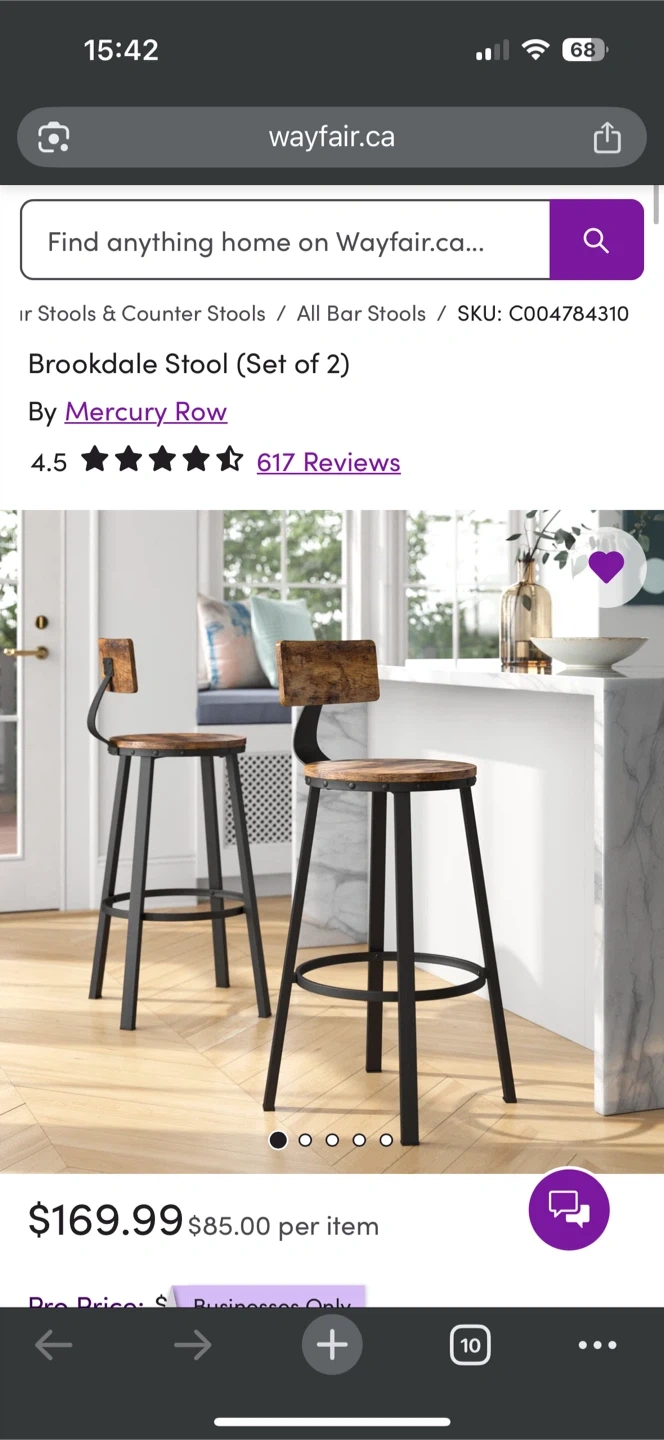 Selling a set of two Mercury Row Brookdale stools. They're in great shape and would look great in any kitchen or bar area. Originally bought for $169.99.