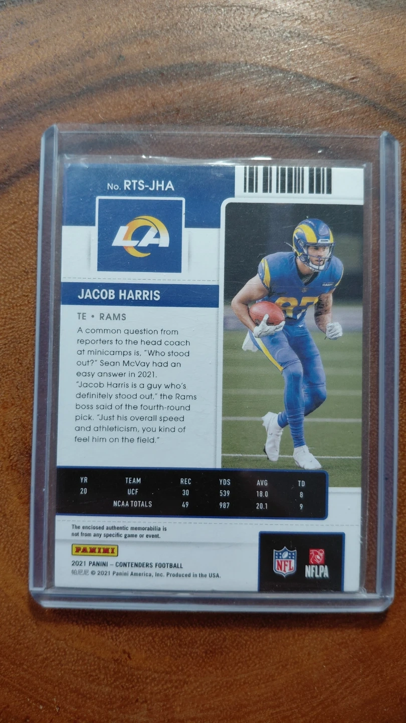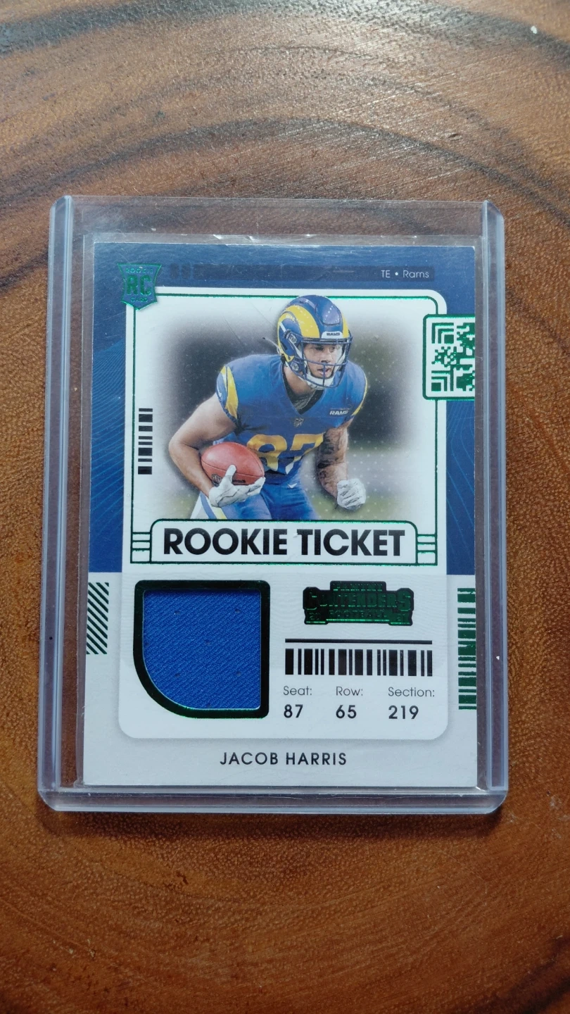 Selling a Jacob Harris Rookie Ticket Jersey Patch from Panini Contenders Football! It comes in a protective case. A fantastic addition for any football card collector!