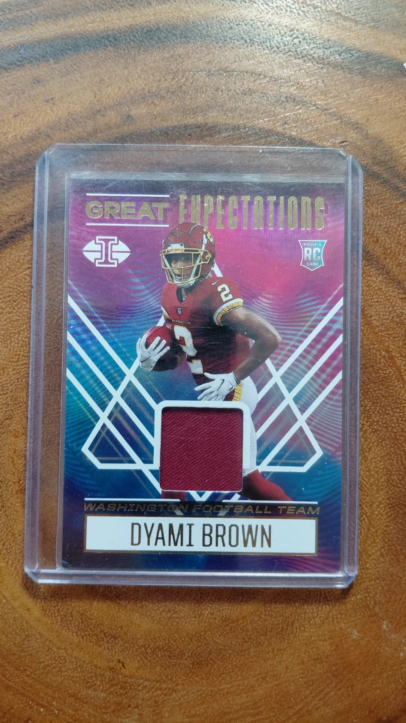 Selling a Dyami Brown rookie card from the Washington Football Team. It's from the 2021 Panini Illusions Football collection. The card features a piece of authentic memorabilia.