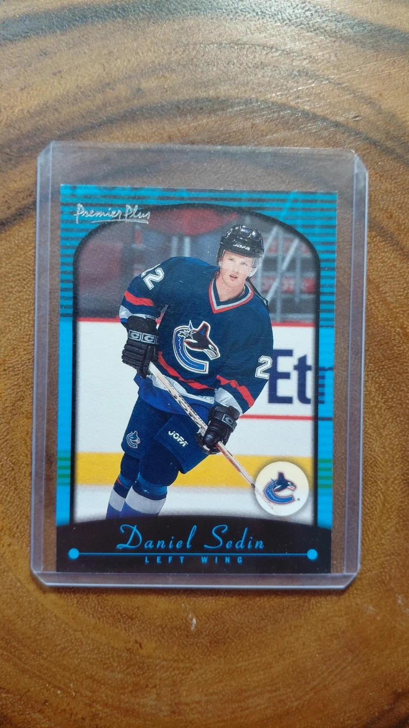 Selling a Daniel Sedin hockey card from the 2001 Topps Premier Plus collection! It's in great condition and would be a fantastic addition to any hockey card collection