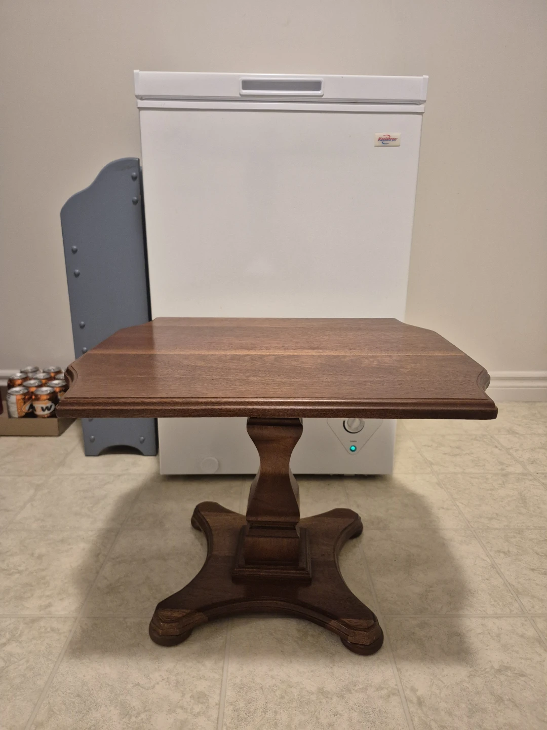 Selling a small lovely brown stained wooden side table. It's in great shape and would look fantastic in any living room or bedroom!! As it is a short table it would be ideal for a child's bedroom as a side table!