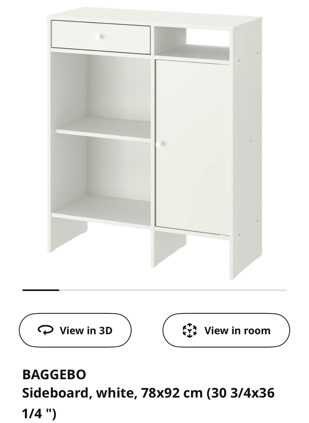 IKEA BAGGEBO White Sideboard - 78x92 cm