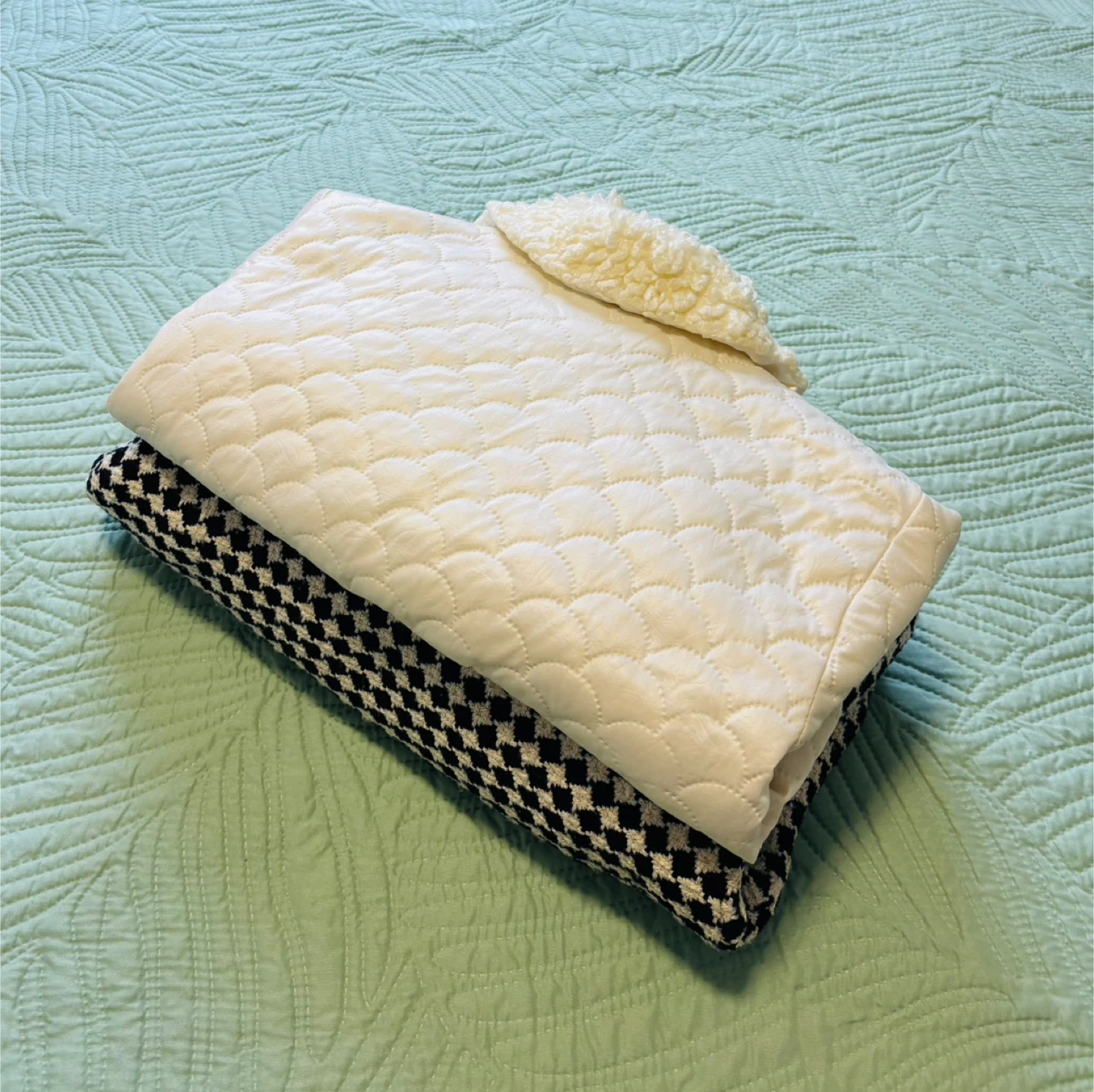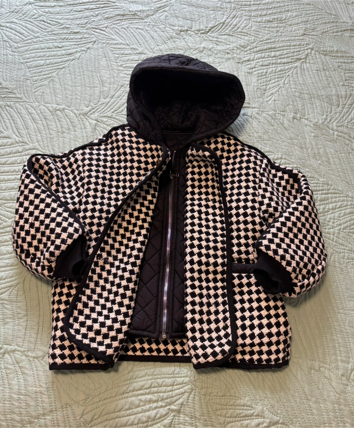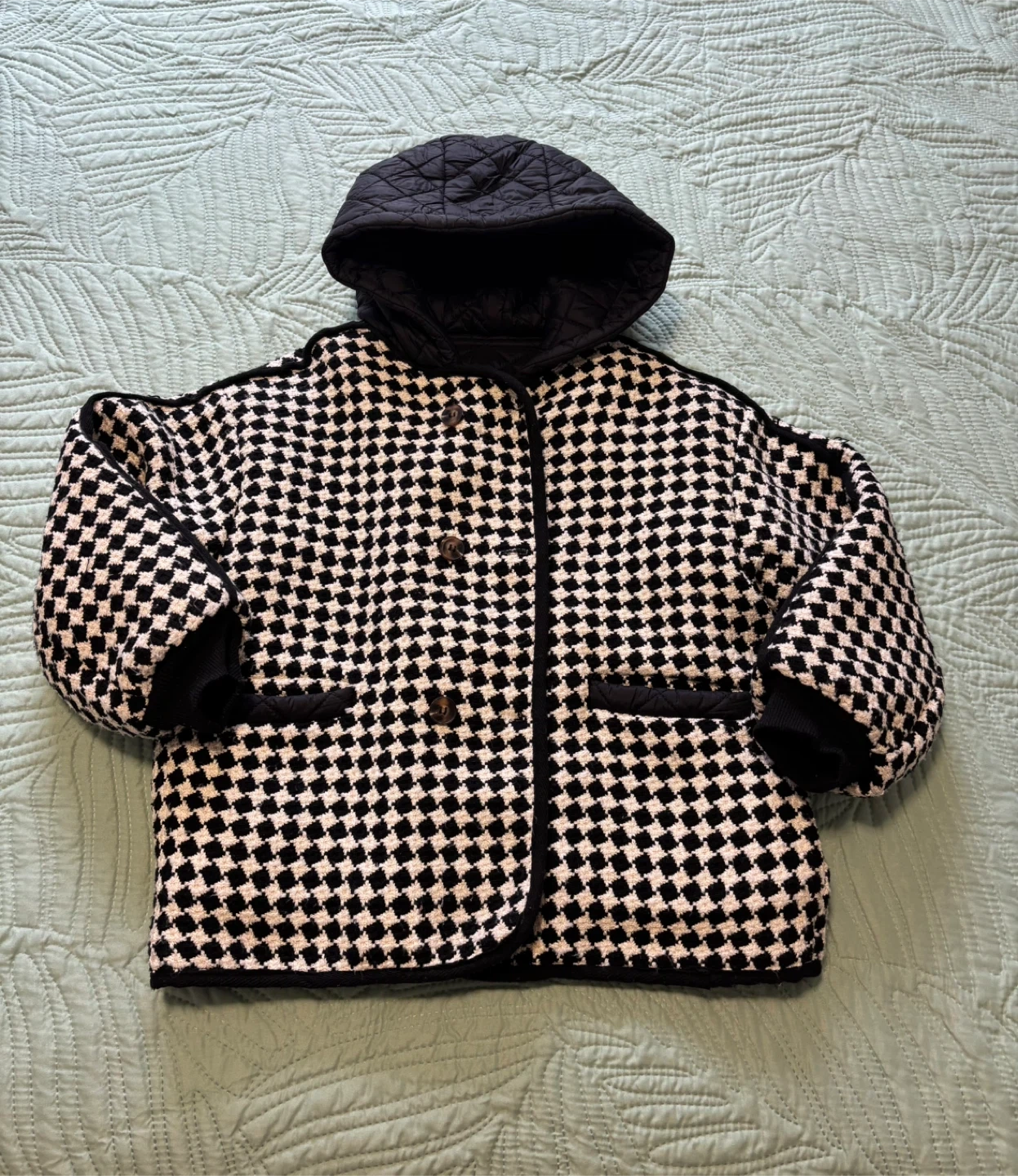 1000+Selling a quality stylish houndstooth jacket with a quilted hood, plus a pearl tone coat for girls around 130cm/51.18 inches! It’s 25$ for both! 💝🤝