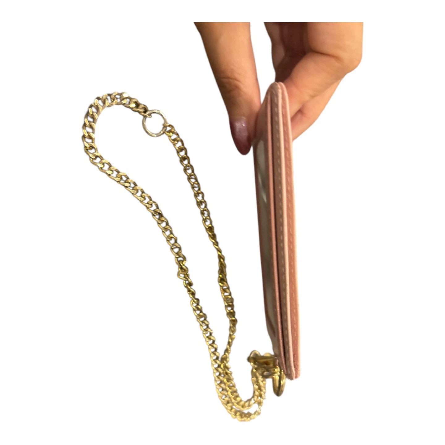 Here's a cute Agnes b. VOYAGE card holder in a lovely pink colour! It comes with a gold-tone chain, perfect for keeping your cards secure and adding a touch of style to your everyday carry. It's in great condition and ready for a new home.