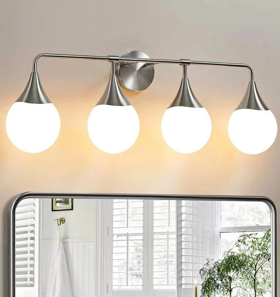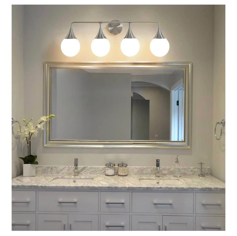 4-Light Mid Century Modern Bathroom Lighting Fixtures Over Mirrors - Brushed Nickel Wall Sconce with Milky Glass Ball Shade for Bath Bedroom
