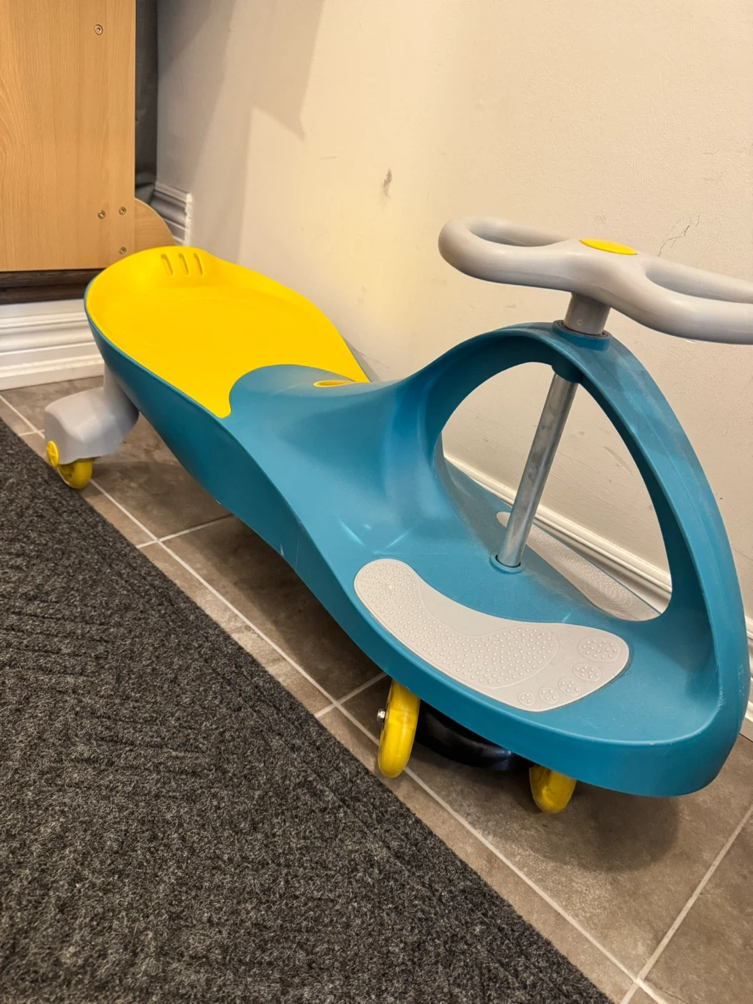Indoor only never went out. Good condition with LED flashing wheel no need batteries. Looking to sell this wiggle car! It's a fun ride-on toy that kids can use to zoom around. Great for indoor or outdoor play.