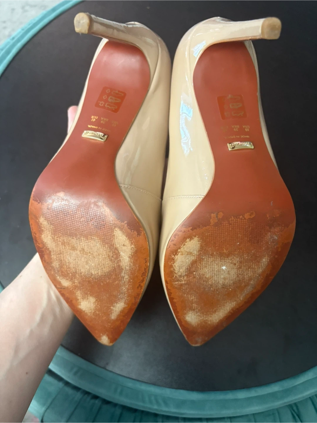 Light wear on soles (see photos), but overall in great condition and still glossy.