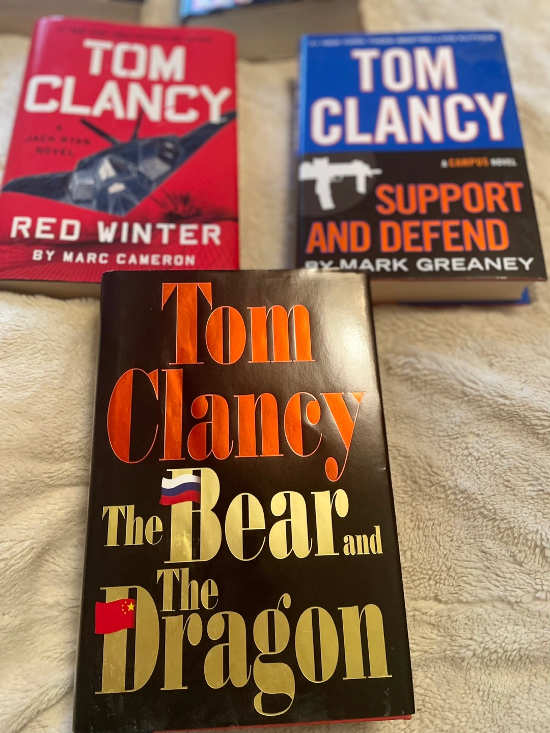 Selling a collection of Tom Clancy books from the Jack Ryan series. Titles include Red Winter, Support and Defend, The Bear and the Dragon, Executive Orders, Under Fire, Red Rabbit, Shadow Warrior, Without Remorse, and Debt of Honor. Great for fans of political thrillers and action novels there’s 10 books in total only read once in great shape only take cash only no e-transfers thank you