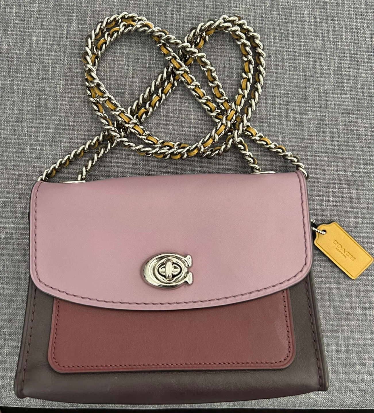 Selling a cute Coach shoulder bag! It features a tri-colour design with a chain strap. The bag is in great condition, no signs of use. Perfect for adding a pop of colour to any outfit